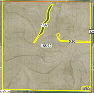 This is a very productive tract of cultivation having all Class II Harney Silt loam soils with 1 to 3% slopes. The access is good with a well-maintained gravel road, CR 320, on the east side and Ave J on the north side. There is an all metal 50' X 60' farm machine storage shed that was built in 1960. The building is in good condition with electricity and a dirt floor.