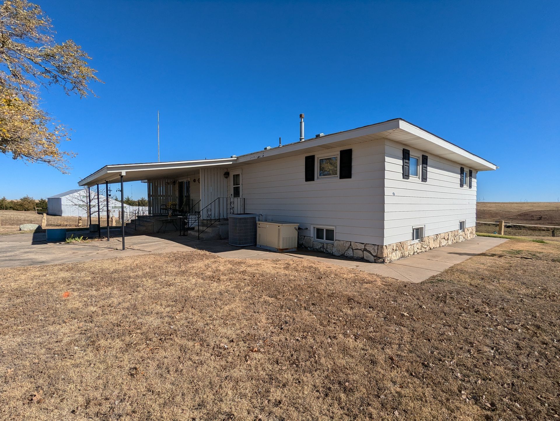 This tract offers a combination of rural residential living, fenced grassland acres for livestock and CRP acres with contracts through 9/30/2031. The farmstead features a nice, modern ranch style home constructed in 1974. Included with the dwelling are 2 bedrooms/1 bathroom on the main level, kitchen, dining and livingroom. The basement features 3 non-forming bedrooms, bathroom and family room. Other supporting structures are an older livestock barn, 40x75 metal frame machine shed, & detached garage. The grassland acres have good barbwire fences, adequate native grasses and water is provided by the farmstead. A separate water well is available for the pasture to be developed. The farmstead can be separated from the balance of the acreage, or the property can be purchased in its entirety.
