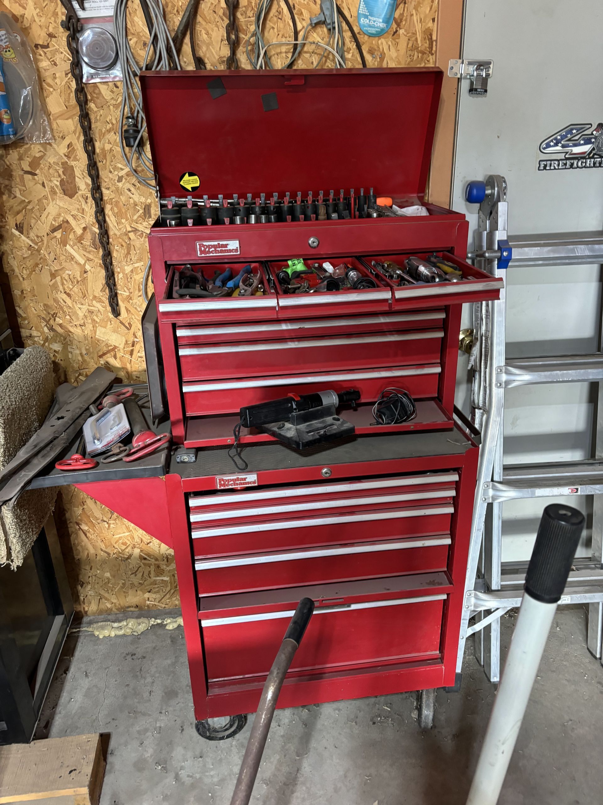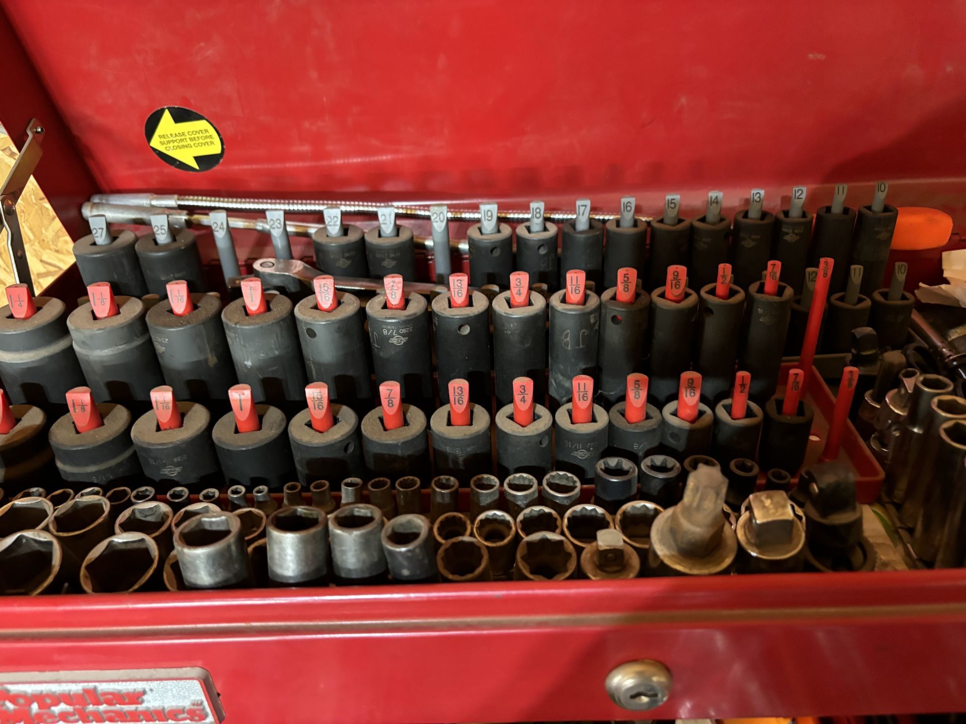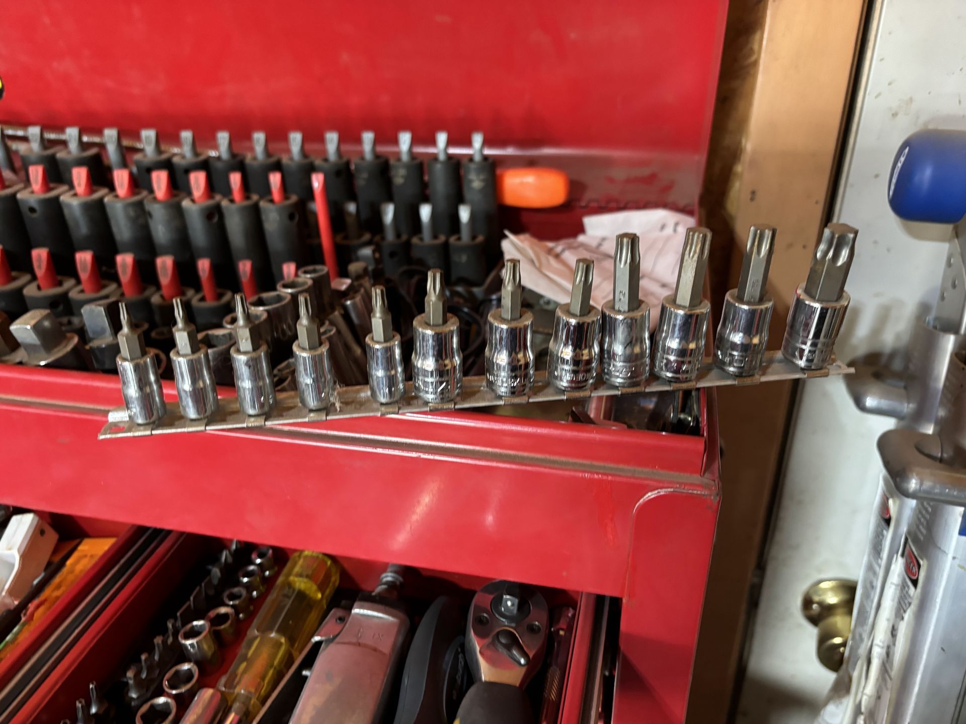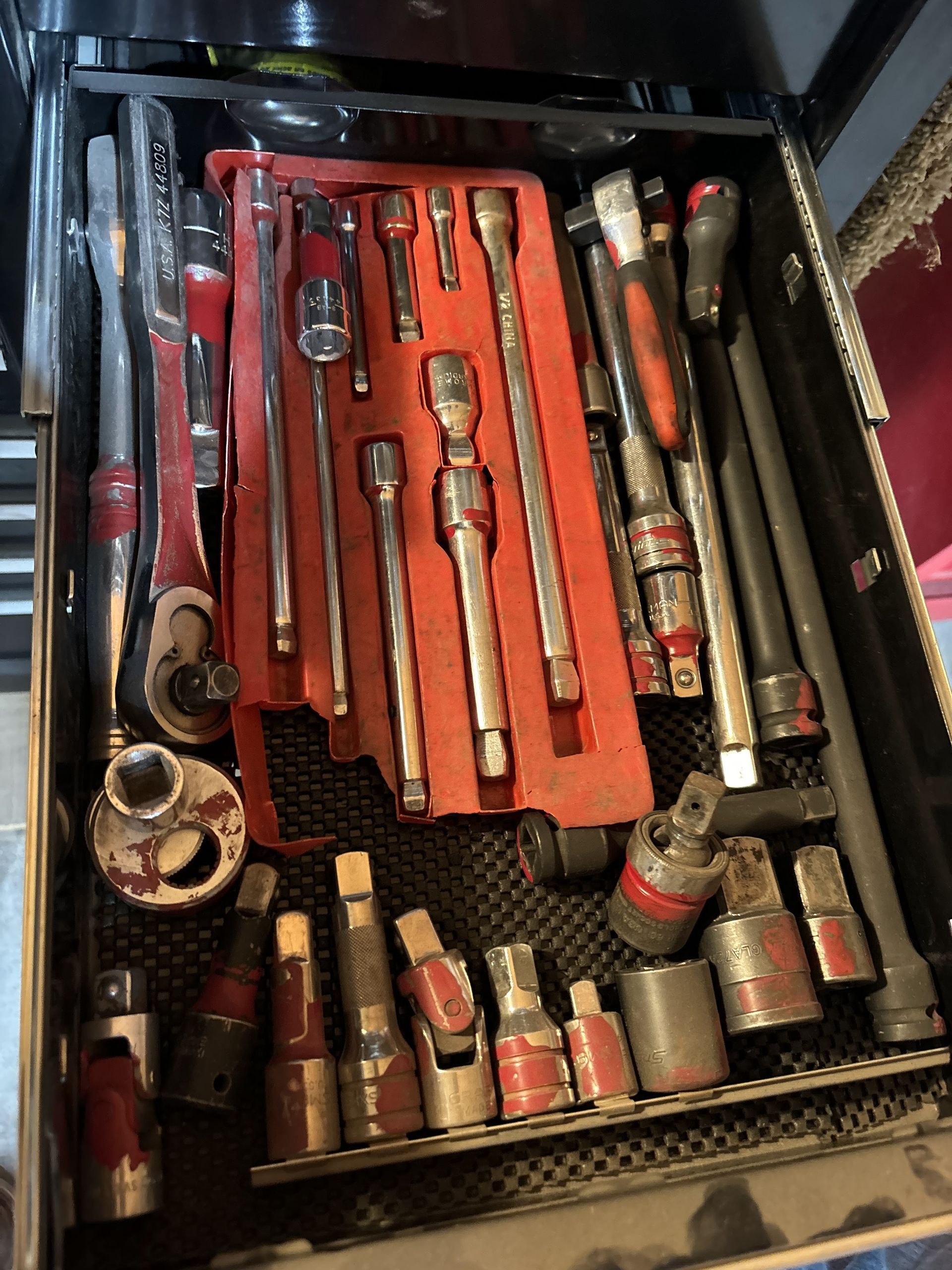 - Mac Tool Cart, Deep Sockets ⅜ Metric 10-19, Radiator Pressure Tester, Screw Extractors