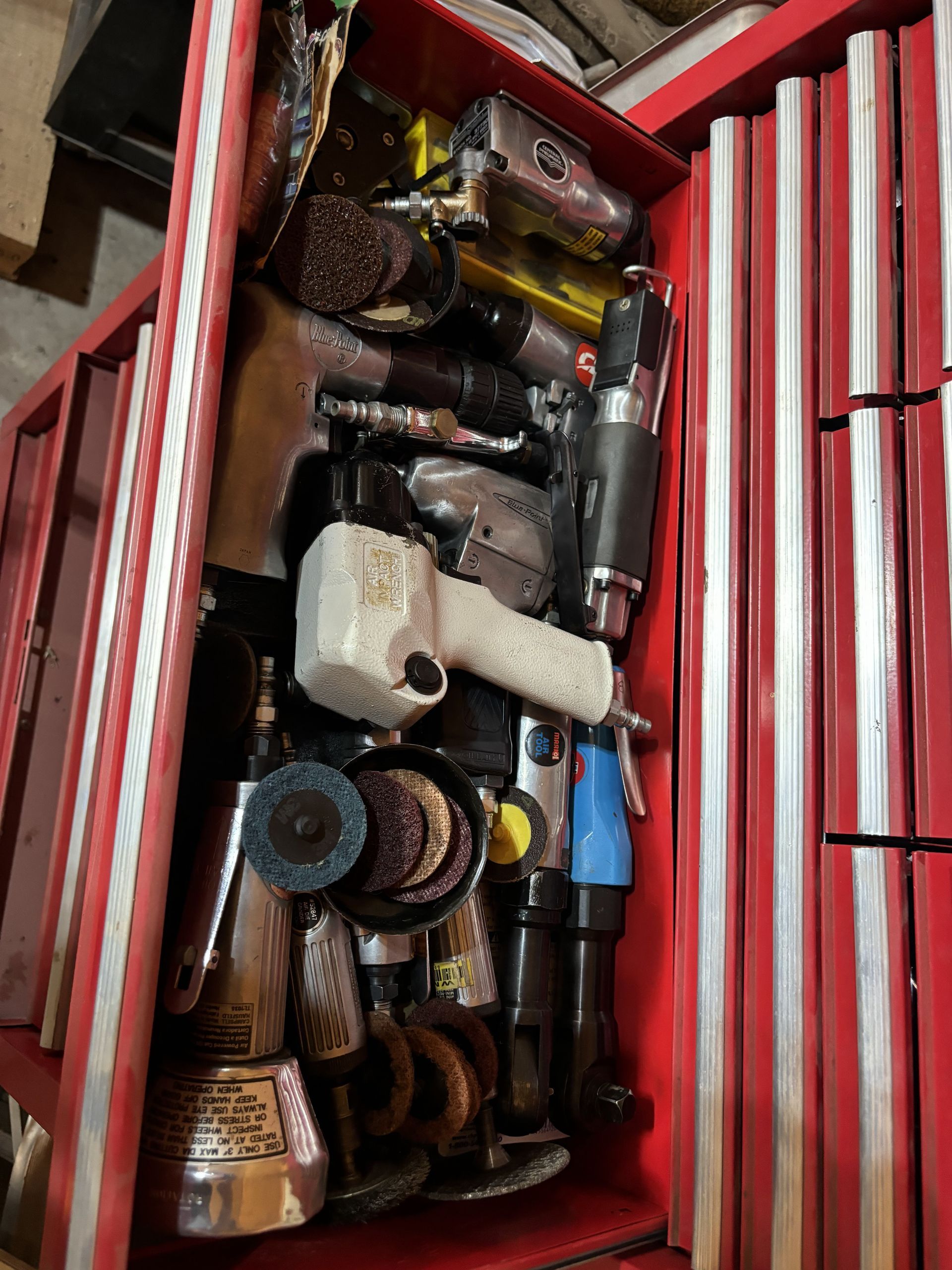 - Air Tools, ¼” Air Rachet, Rivet Gun, Paint Gun, ⅜ Air Ratchet, Die Grinders, Body Saw, Sanders
