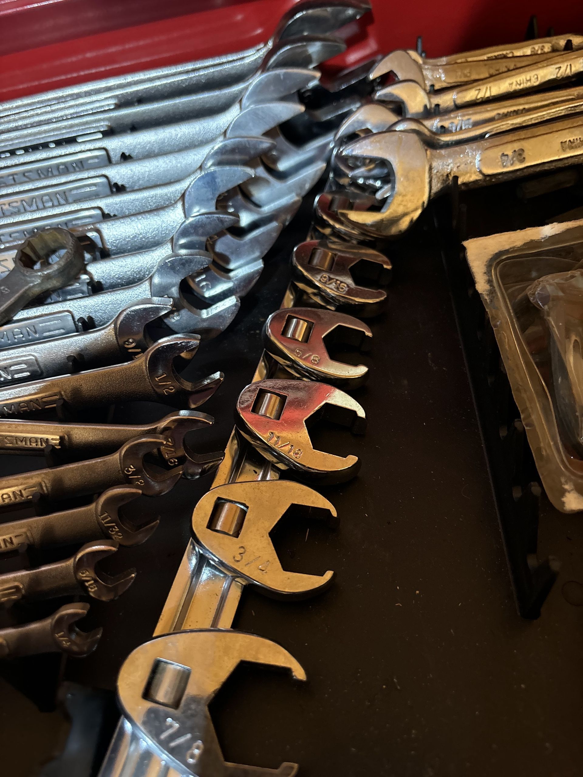 - Craftsman Screwdrivers, Wrenches, Fuel Line Wrenches, ½” Drive, ⅜” Breakovers, Swivel Rachets, ⅜, ¼, ½ Impact Extensions, 19V-12V cordless, magnetic tray, Pry bars,
