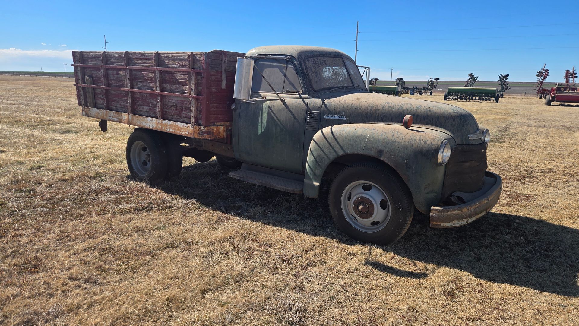 1952 Chevrolet Truck, 10’ Box, Hoist, 4spd, 6Volt, V6, Livestock rack extensions, duals, converted to safe rims, VIN:5VJK-1444