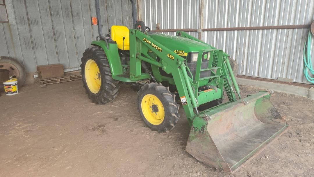 2001 JD 4300 Utility Tractor, JD 420 Front Loader, MFWD, 1224hrs, 3pt, PTO, ROPS, Add-on 2 hydraulic remotes, SE#981649000527