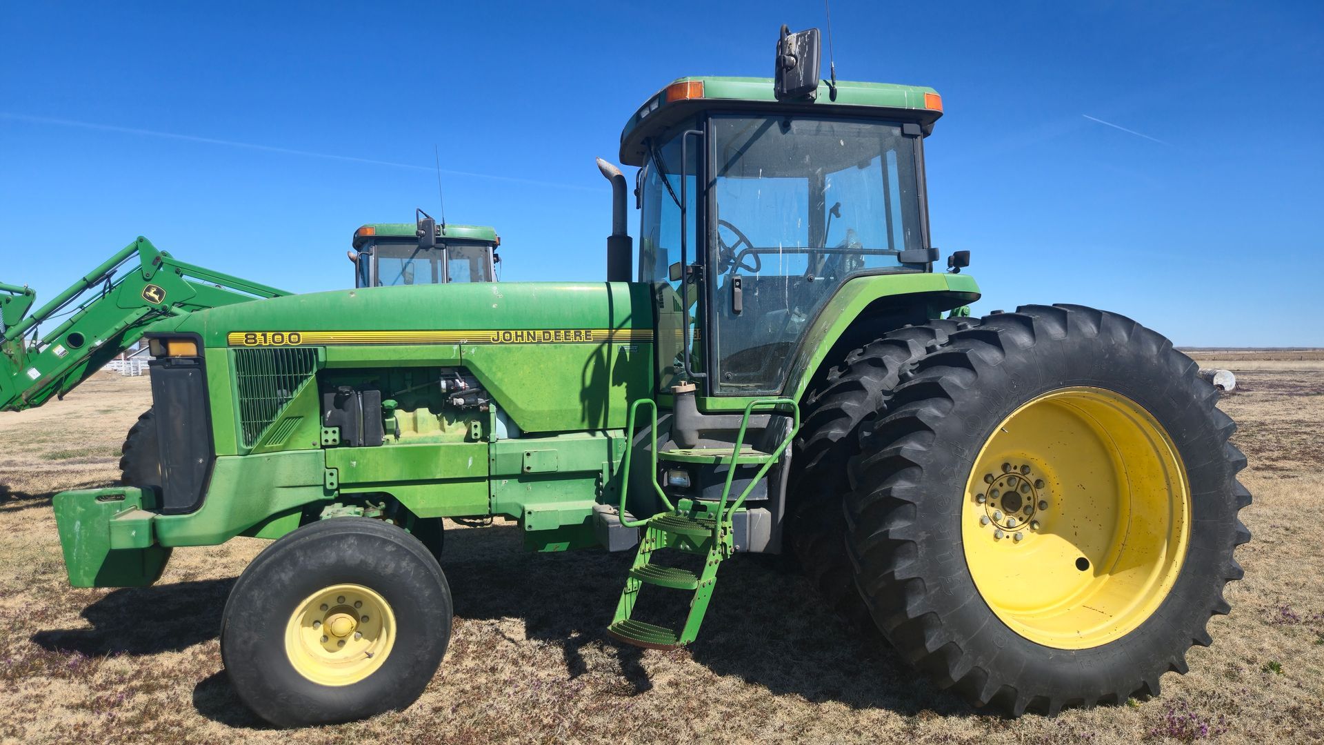 1995 JD 8100 Pwr Shift, 7880 hrs., transmission gone through by BTI in 2017, purchased new, New Cab Kit, 3 remote, 3pt, PTO, 480/80R42 Rear Dual Tires; SE#RW8100P003048