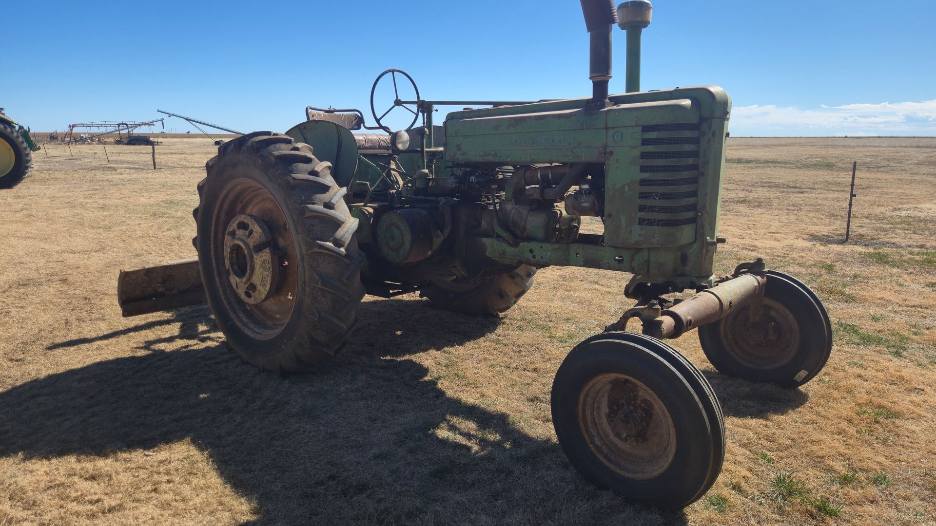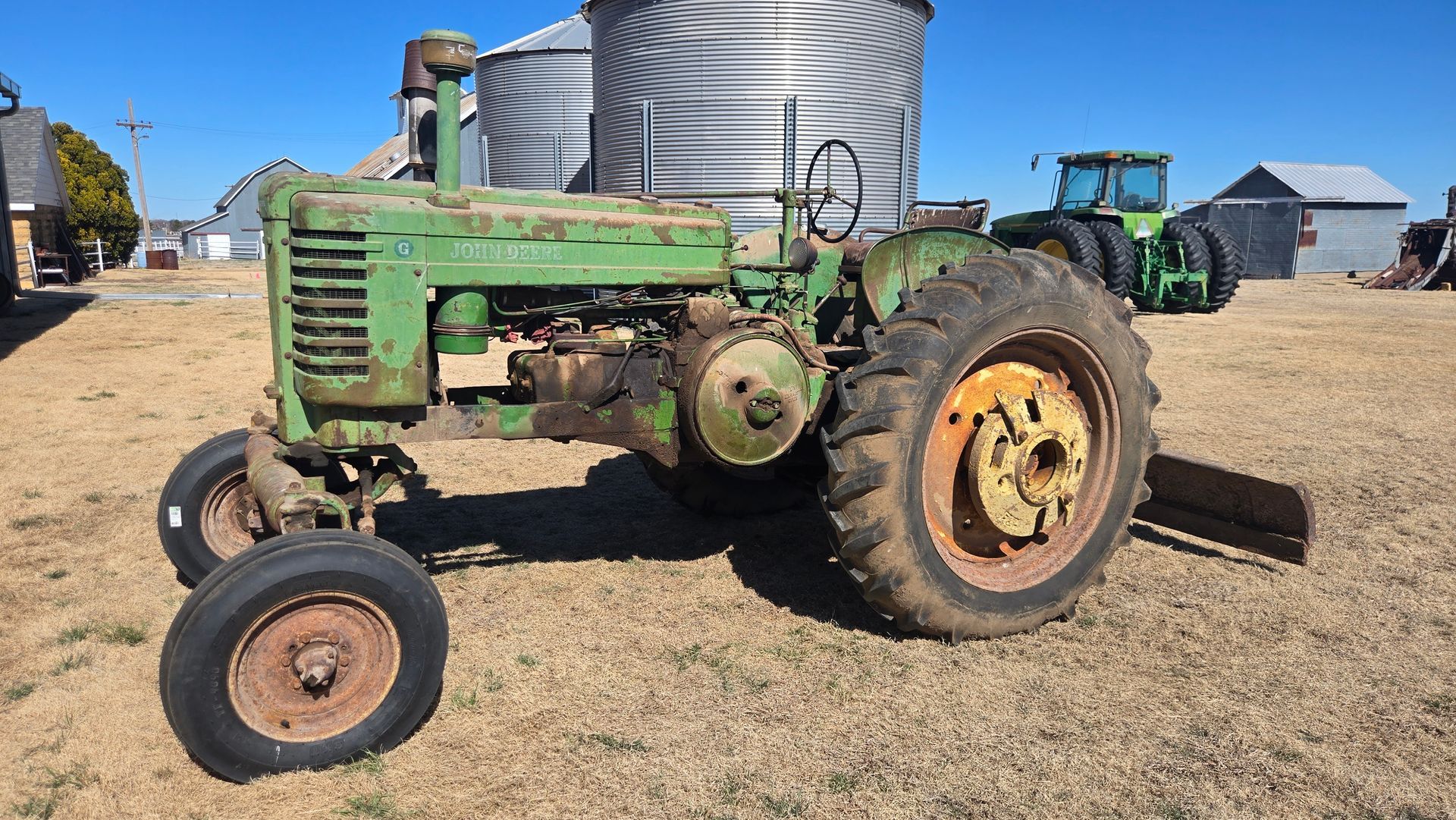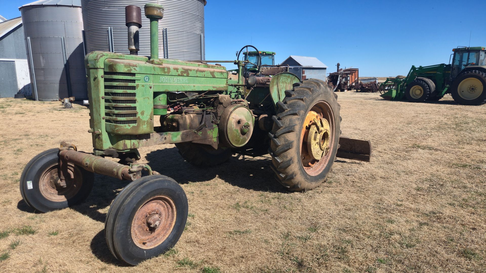 1952 JD Model G, new tricycle conversion with add on water pump, running cond., SE#F874R