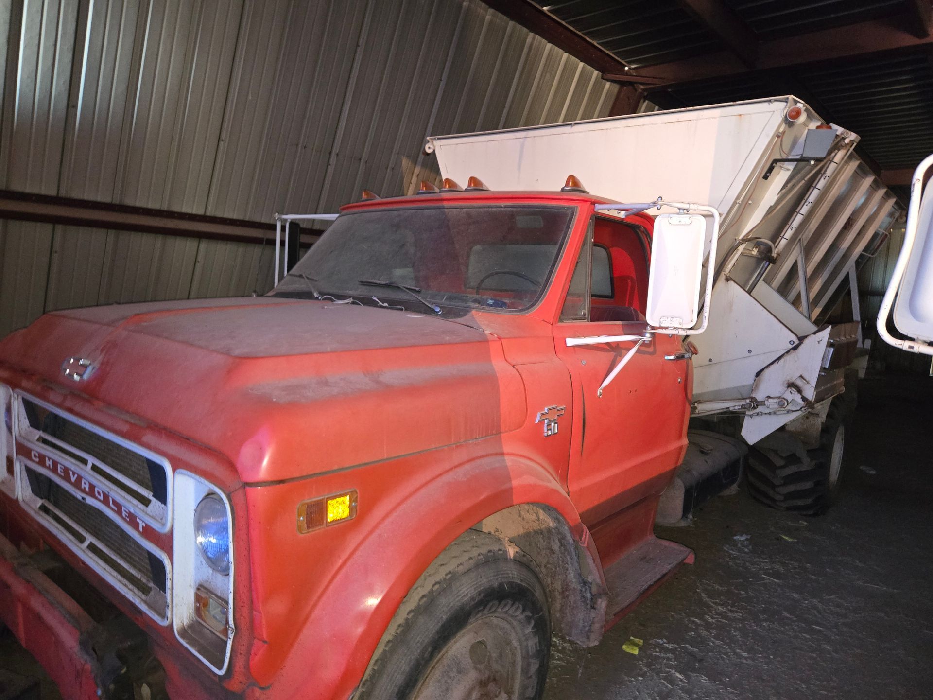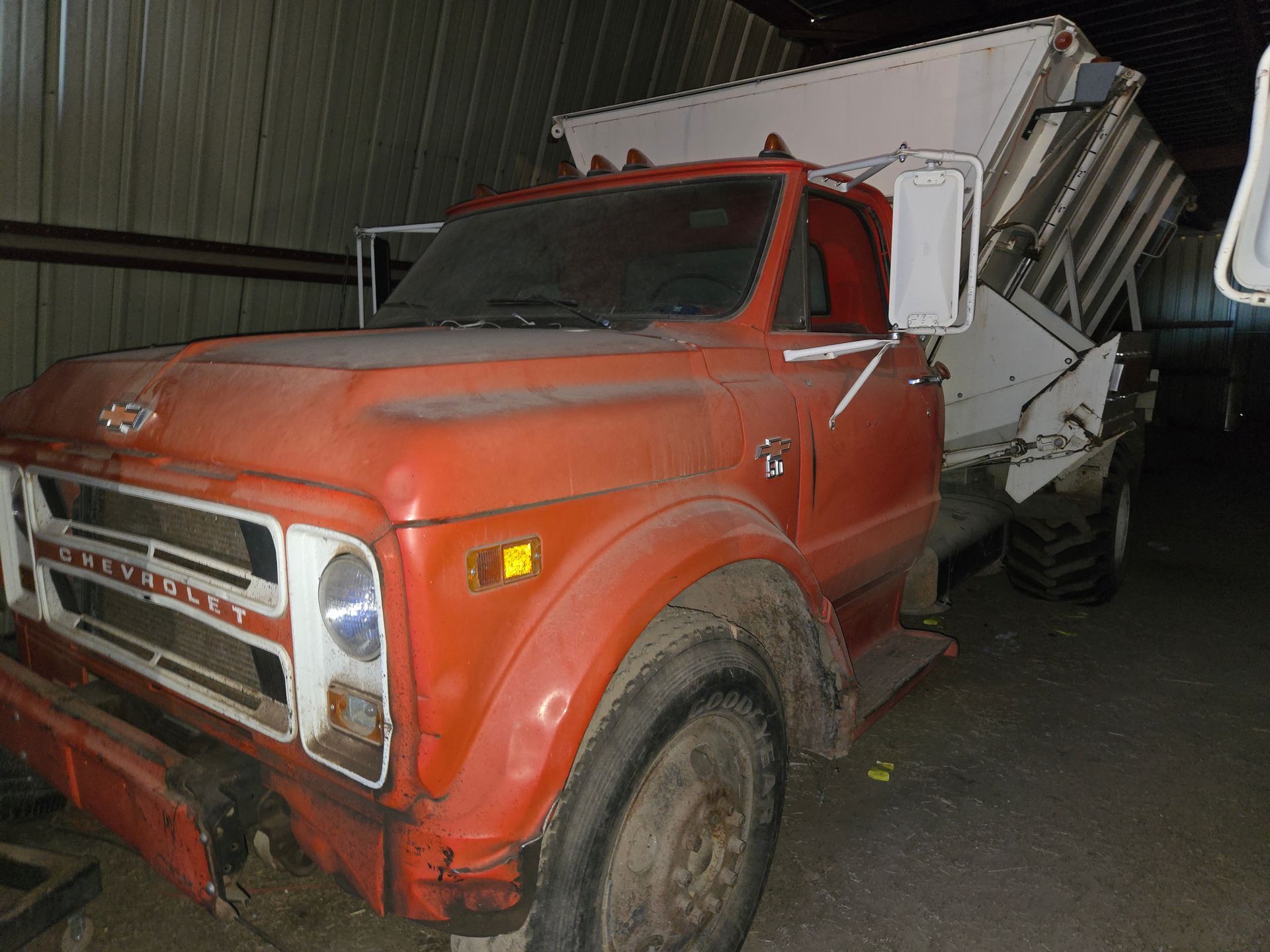 - 1968 Chevy C50 Feed Truck; Harsh 350; Dole Scales; Outside Read out; 4 Augers w. Poly Liner; 5x2sp; New Mr. Good Wrench 366 Engine, Single Flotation tires; VIN: CE538S150897