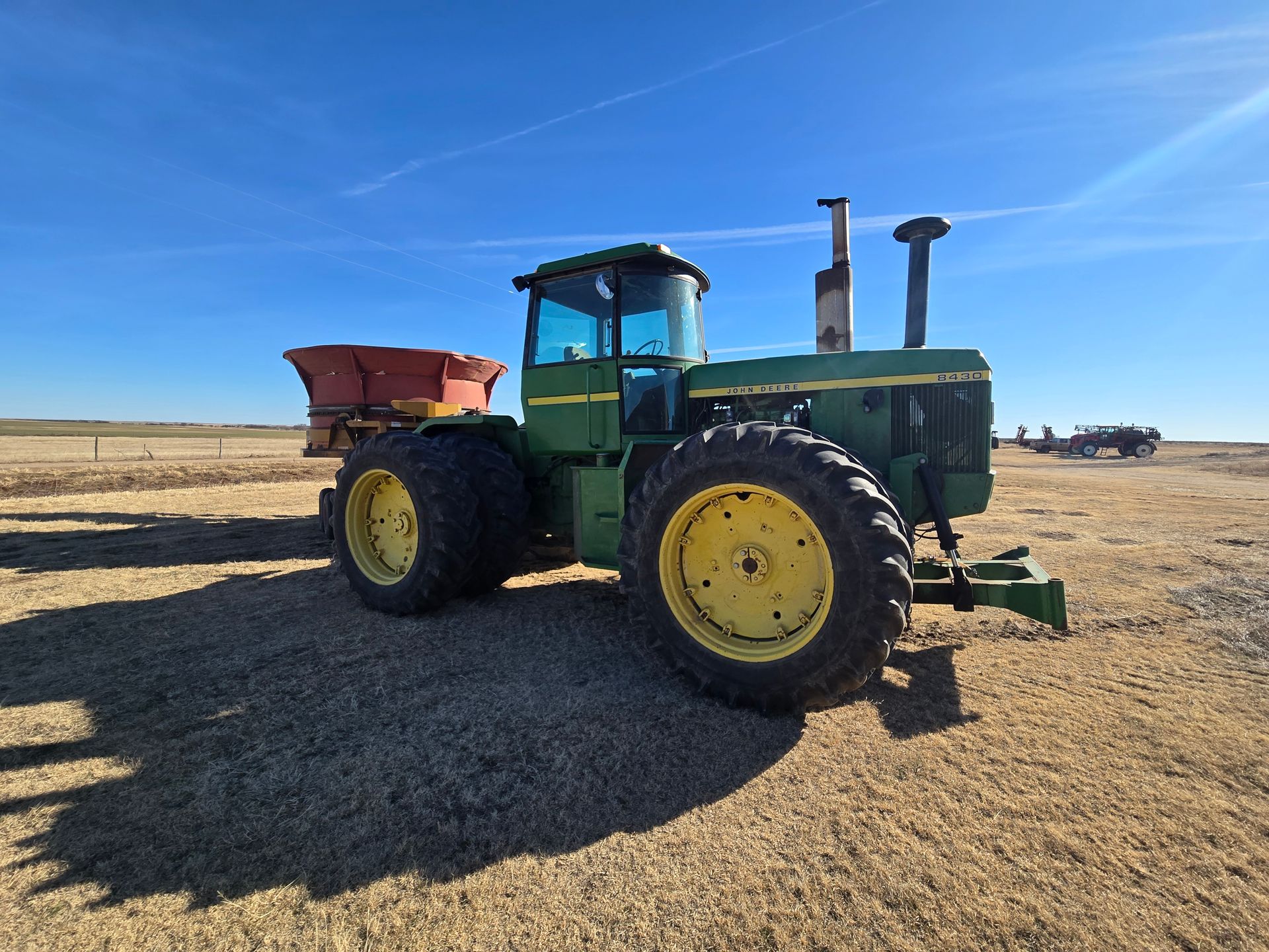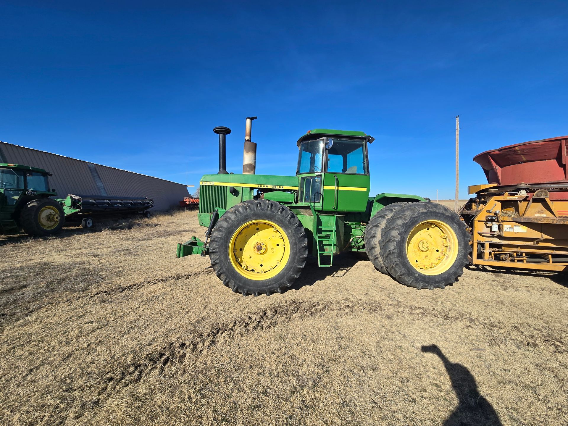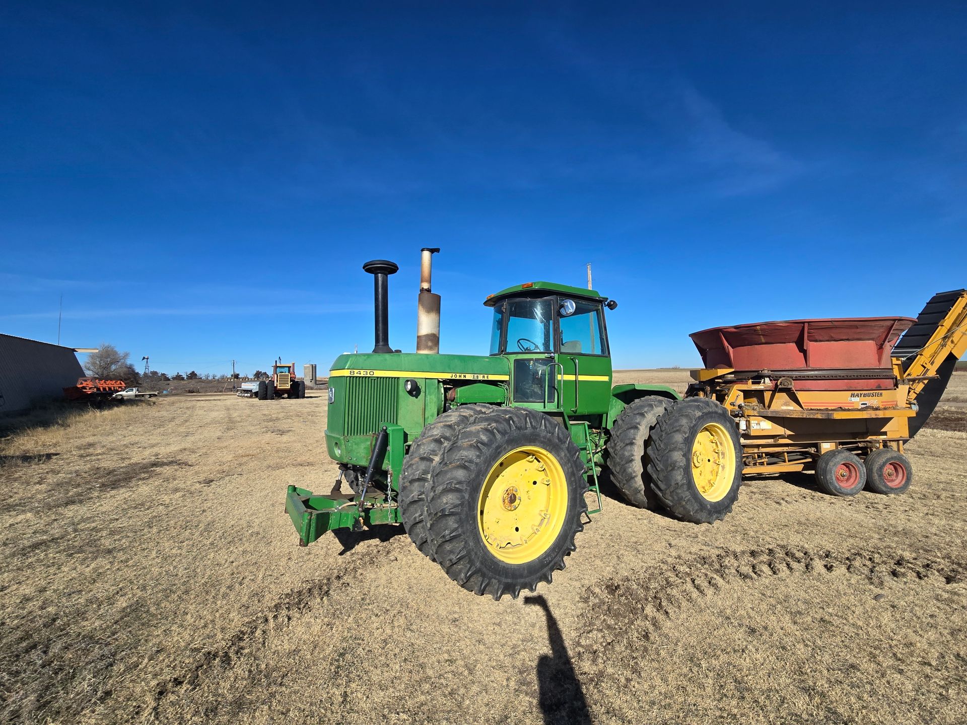 - John Deere 8430; 18.4-38 Tires; 3 Remotes; Modified Quad; Only 250 hrs. on complete overhaul and $36,000.00 repairs all by BTI of Ness City, & new PTO clutch; 12,429 Hours; SN:006164R, Sold with: