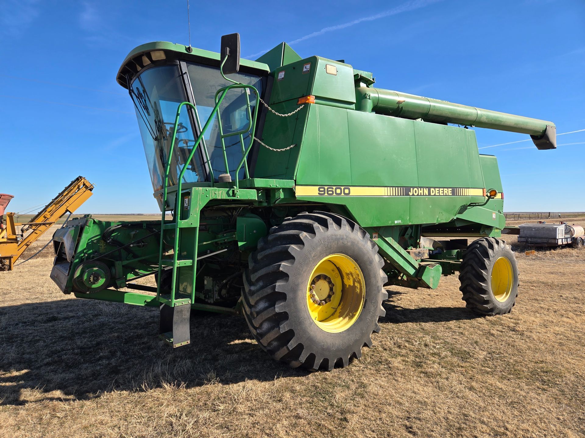 - John Deere 9600 Combine; 16.9-28 Tires; 2336 Separator, 3522 Engine; 30.5L-32; Chopper; SN:H09600X665572, Selling w/ 30’ JD930 30’ Header w. 4-wheel trailer; good condition & has been shedded; SN: H00930R0R666364