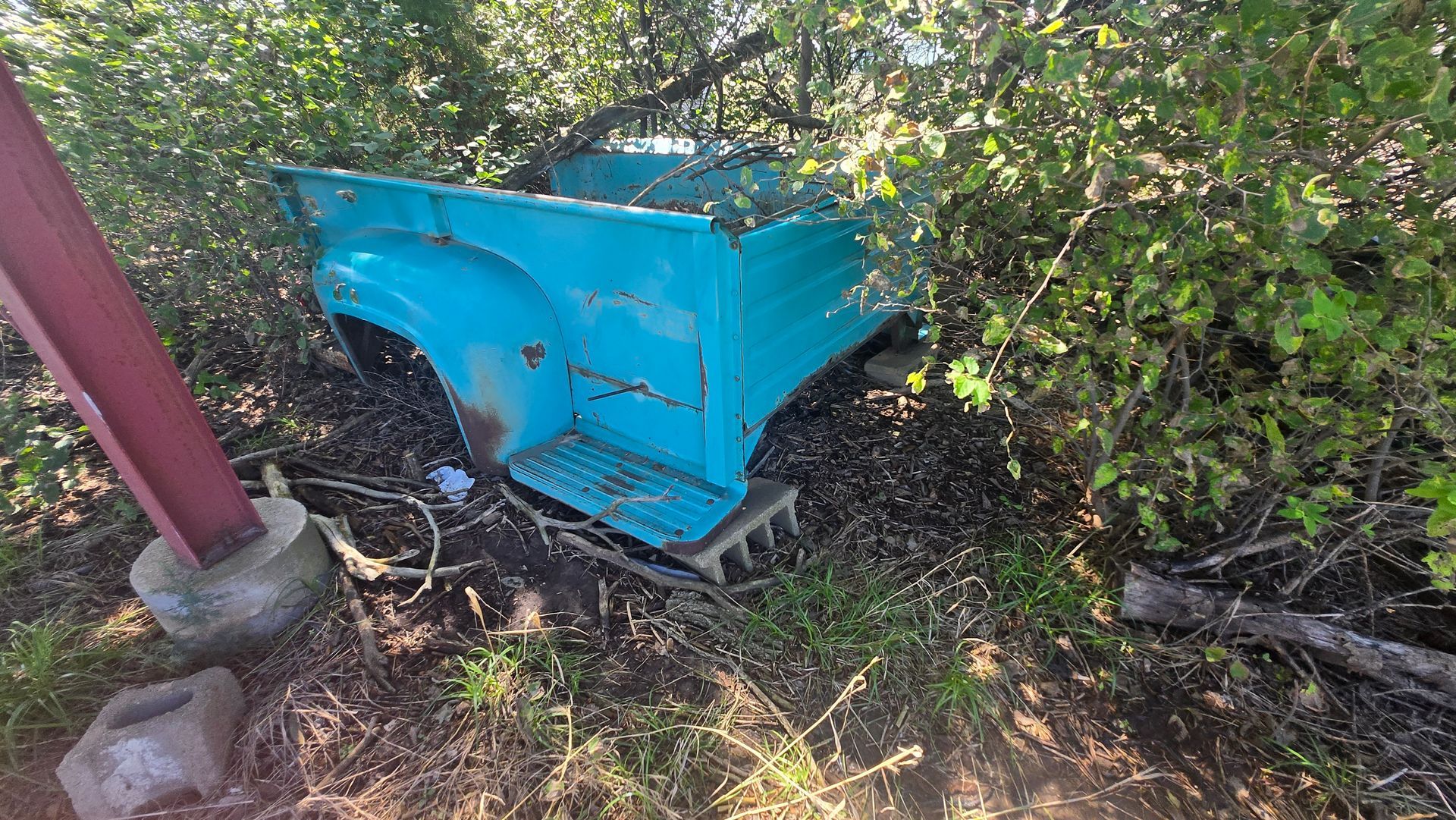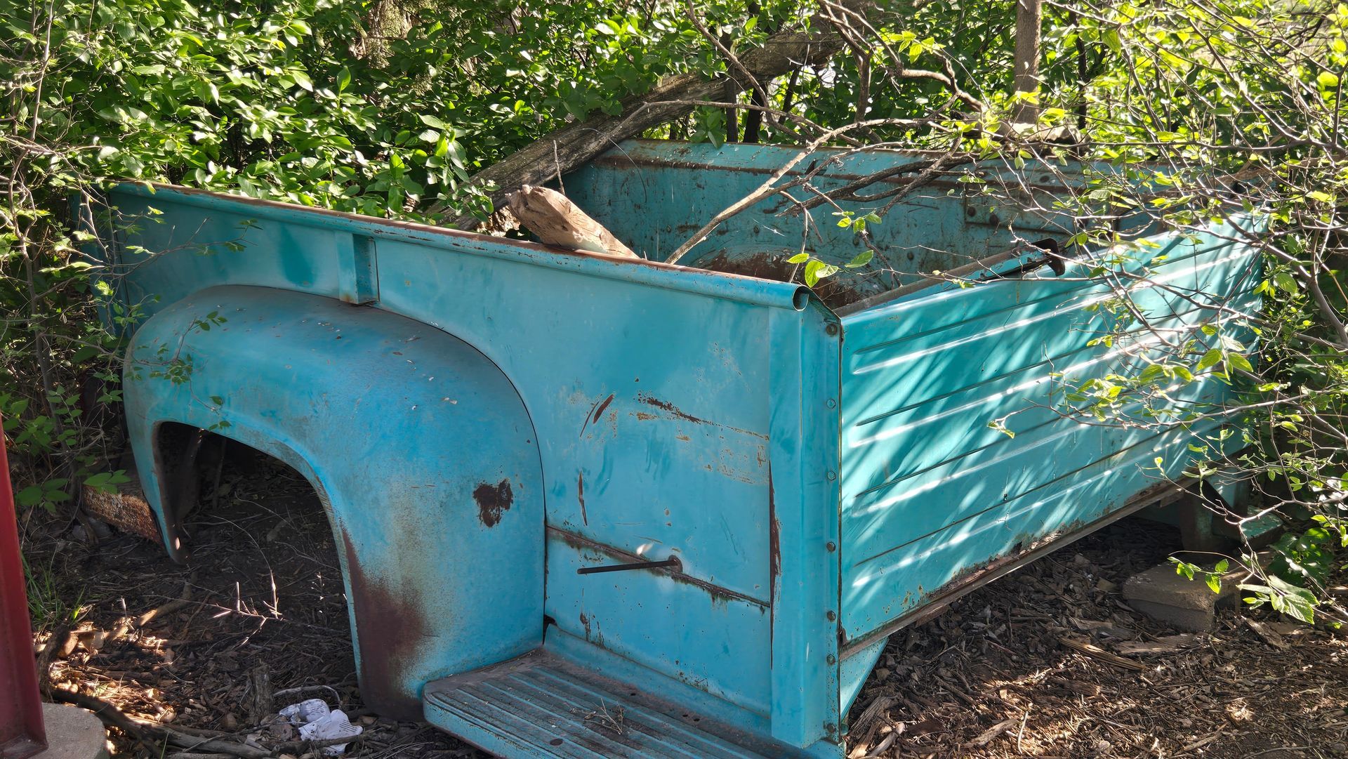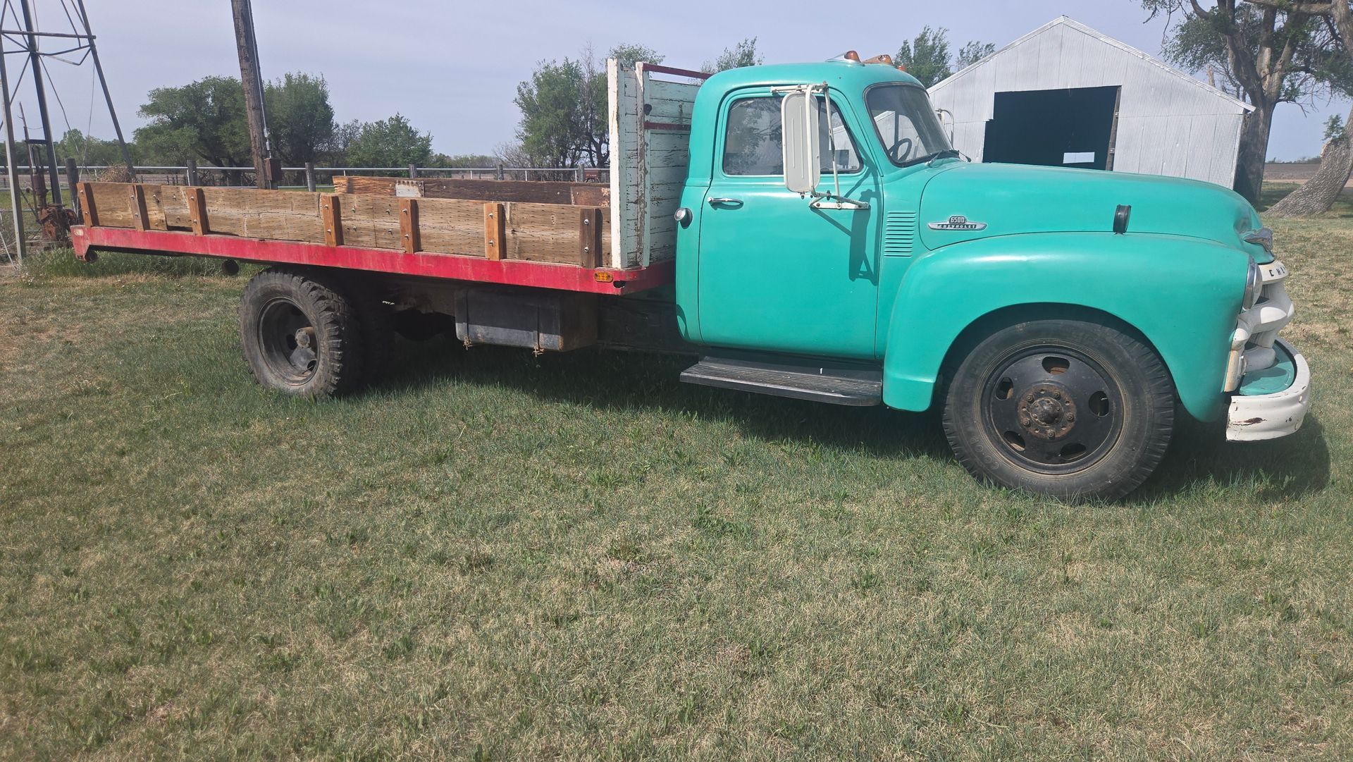 - 1955 Chevy truck, 4x2spd, 15’ box & hoist, w/steel floor & grain sides, VIN# 009584EF55N