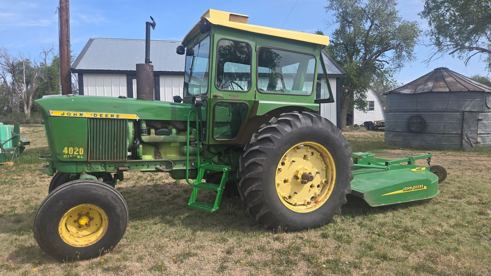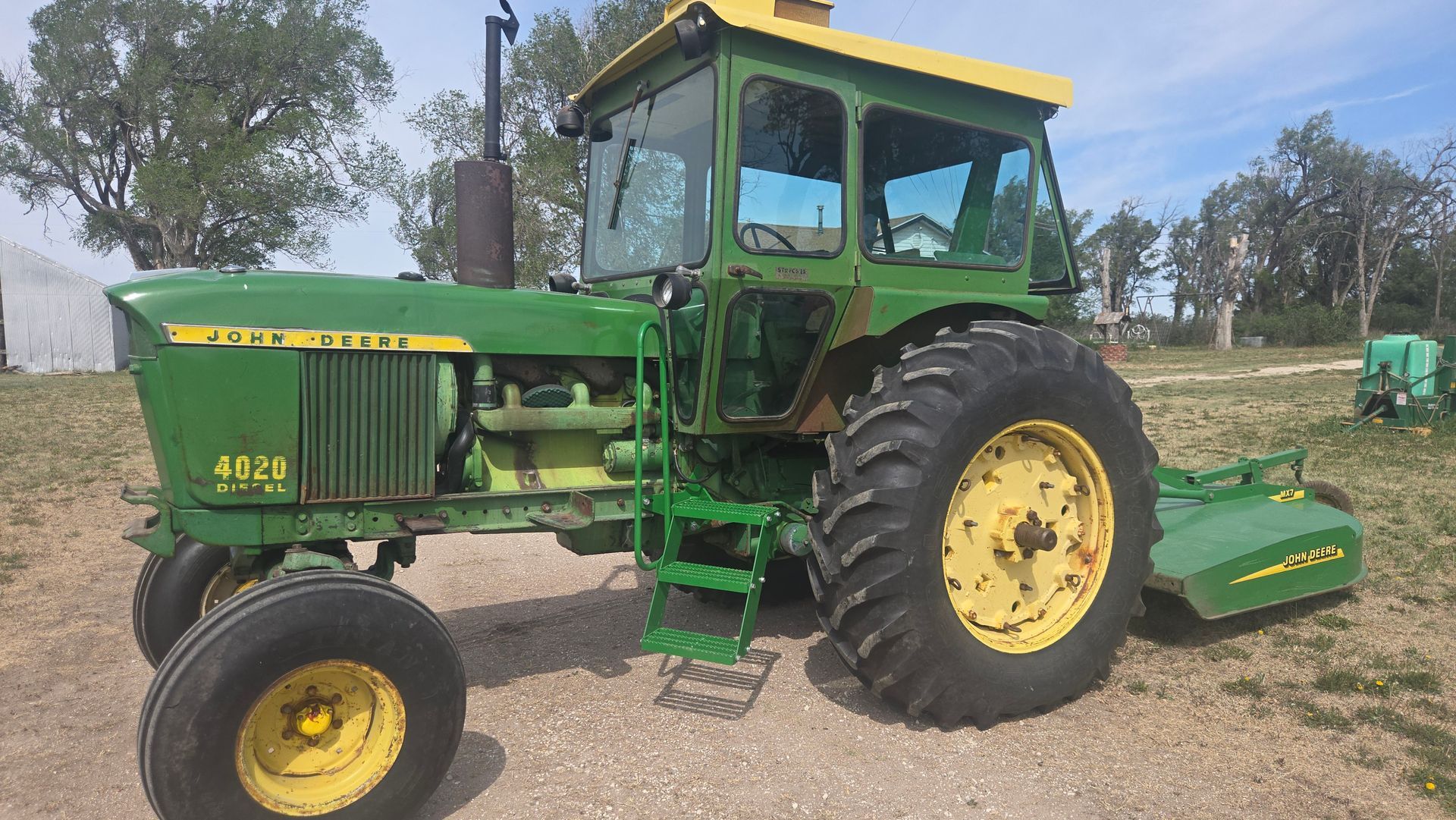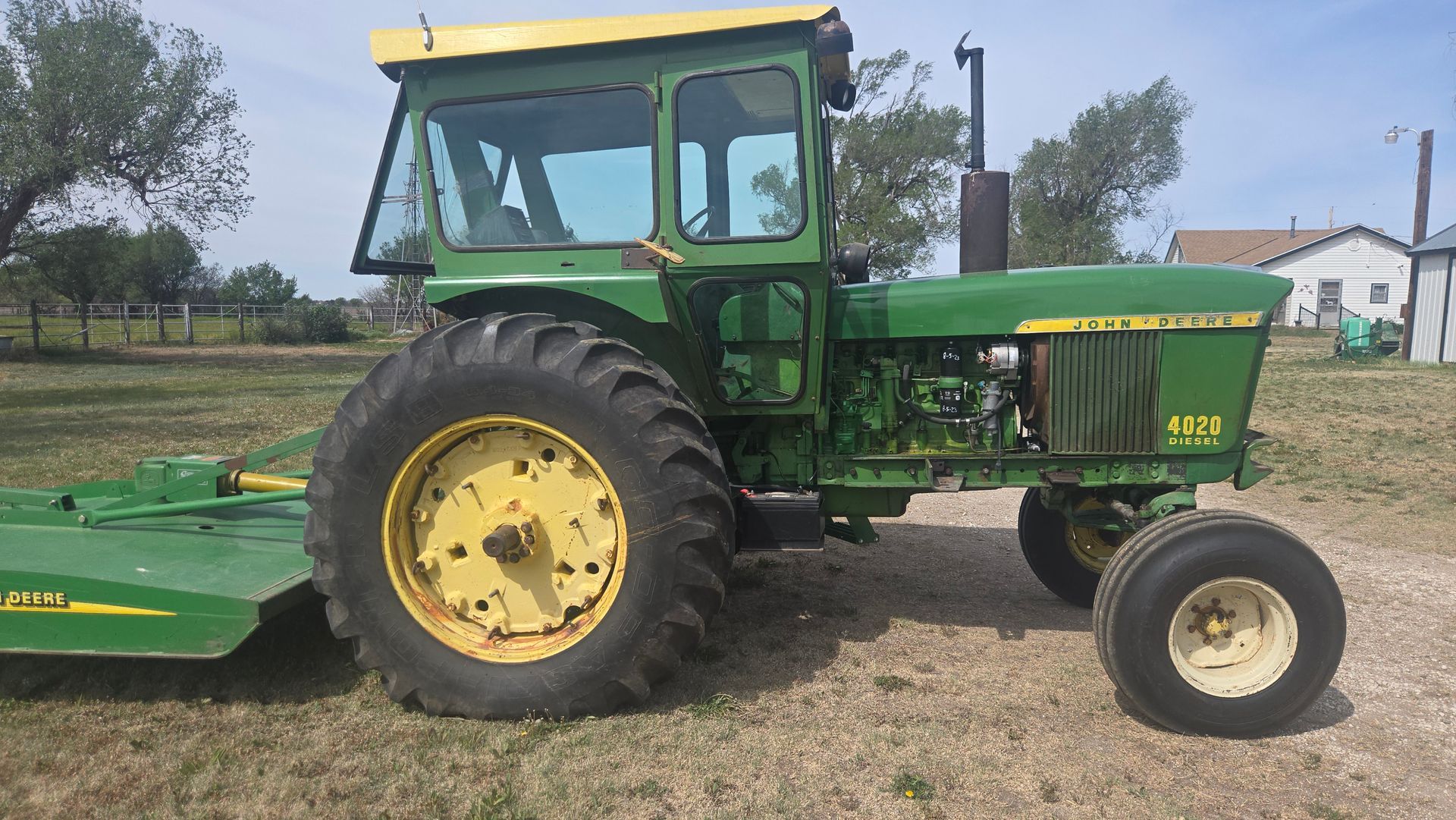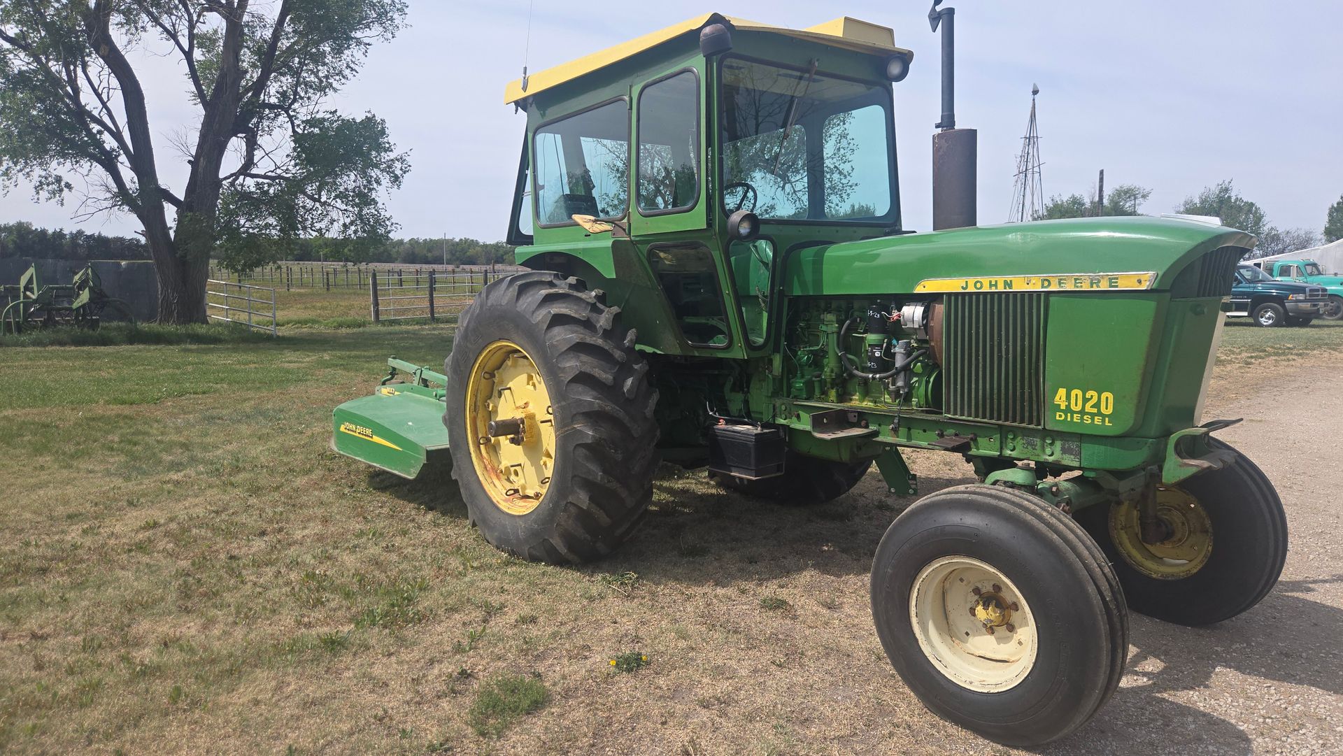 - JD 4020 w/JD 48 loader/grapple, shows 6910 hrs., 18.4x34 Rear, 10:00x16 Front, hyd. on console, $8200 recent repairs including injector pump & injectors, SN:203326R