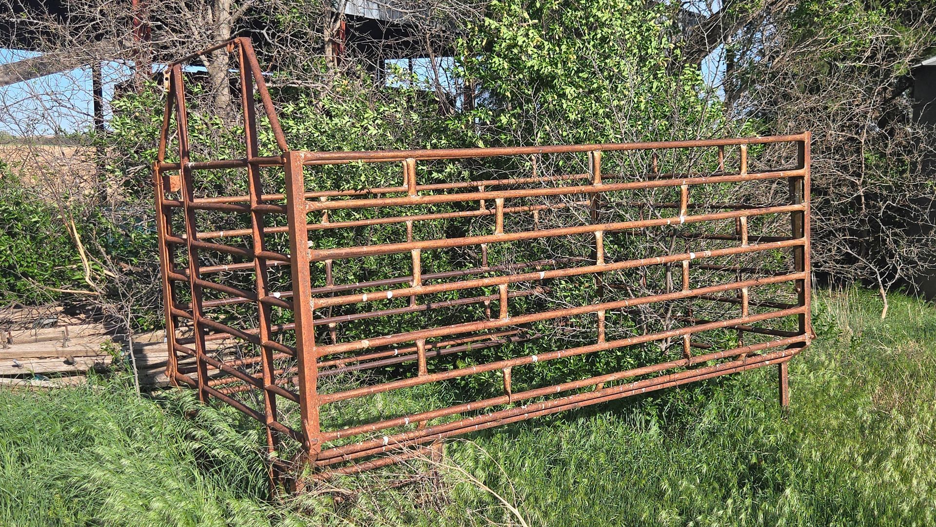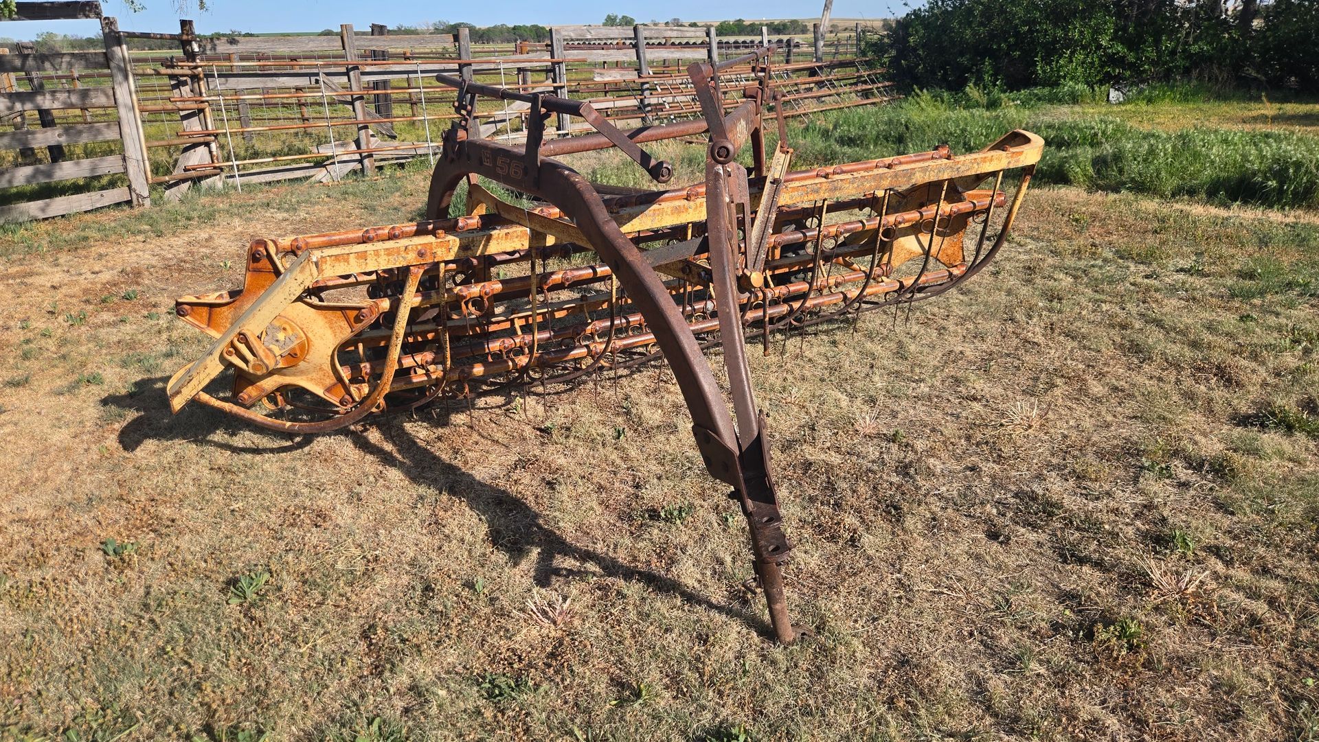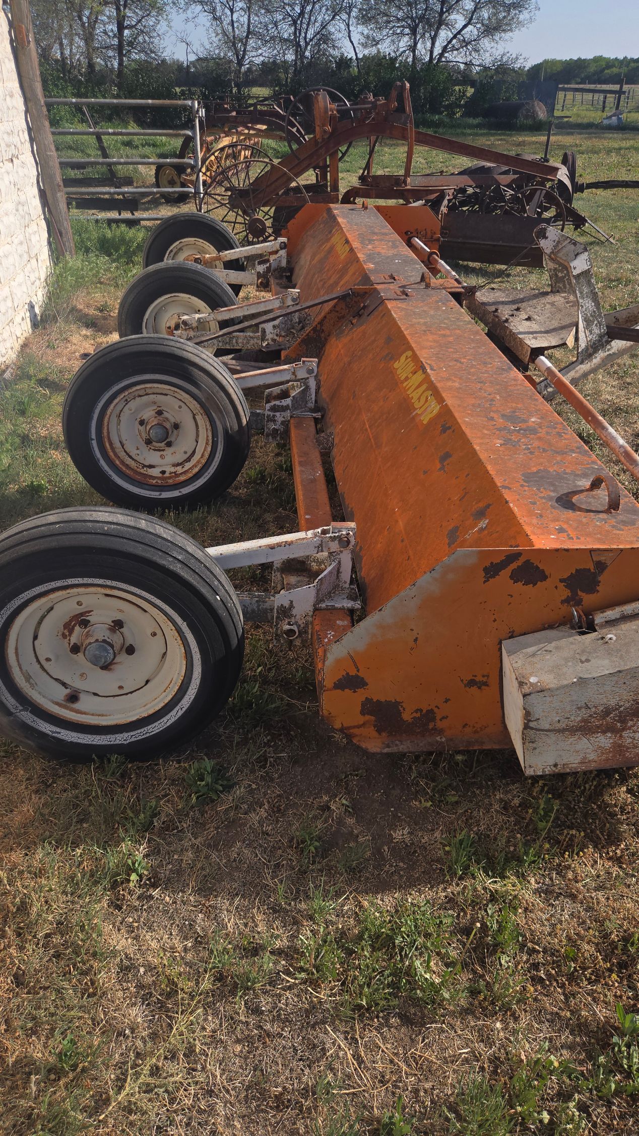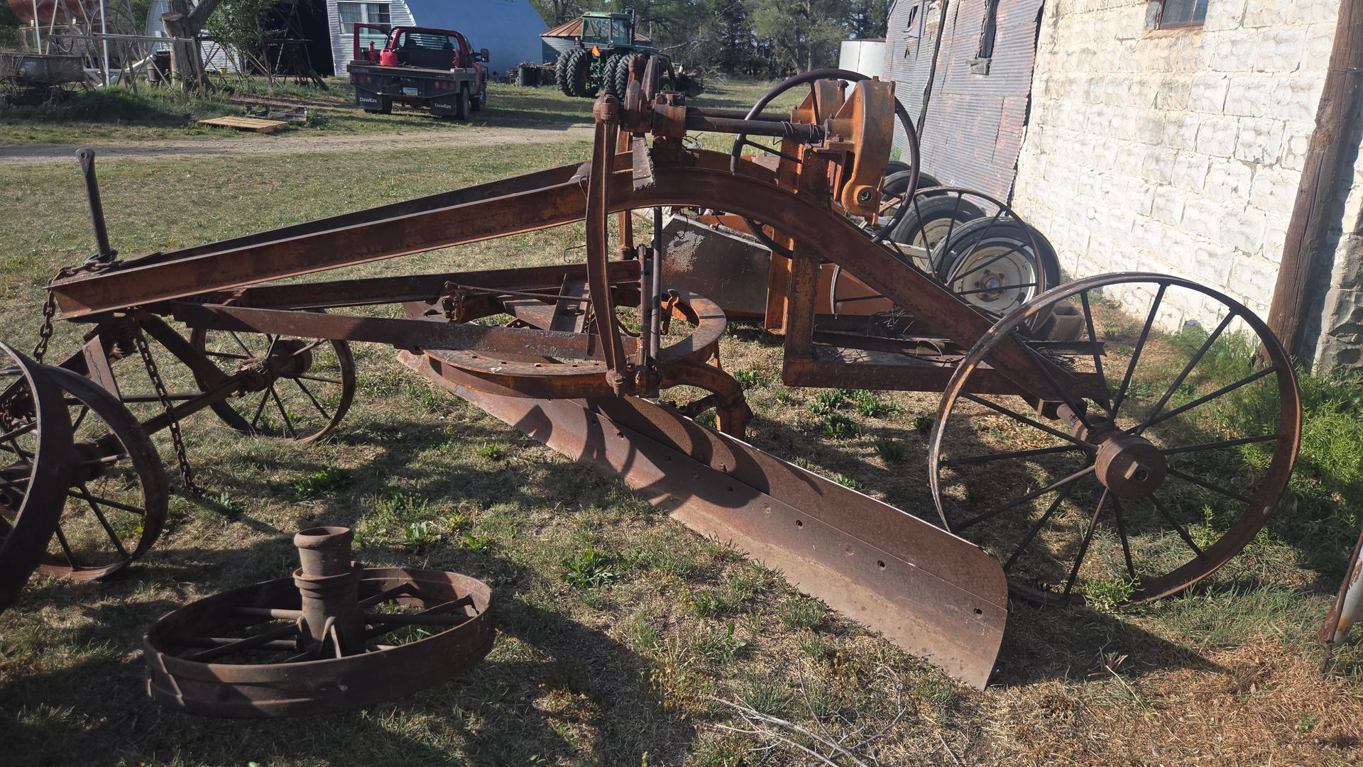- Old grain wagon on steel, Dump rake, Disc harrow