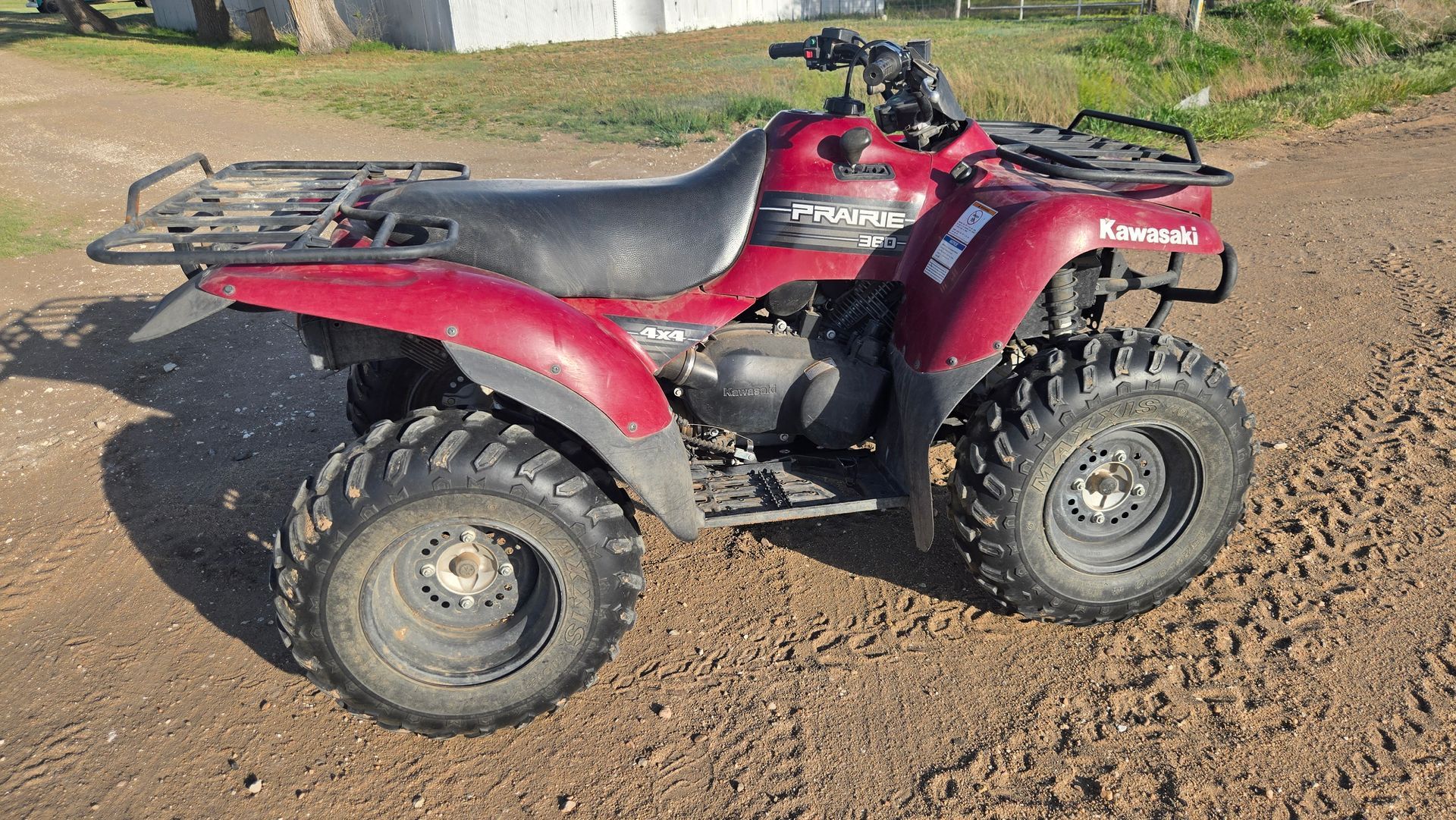 - Kawasaki Prairie 360 4-wheeler, 4x4, 1838 hrs., 1063 mi., SE# JKBVFHA15AB583137