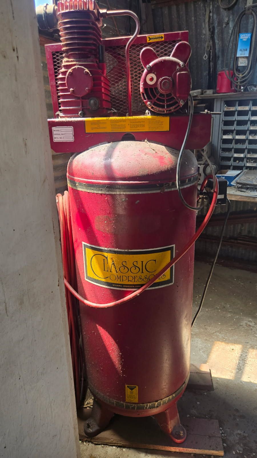 - Classic Air Compressor, upright, 60 gal., 220v, runs but needs repair SE# W32G200492