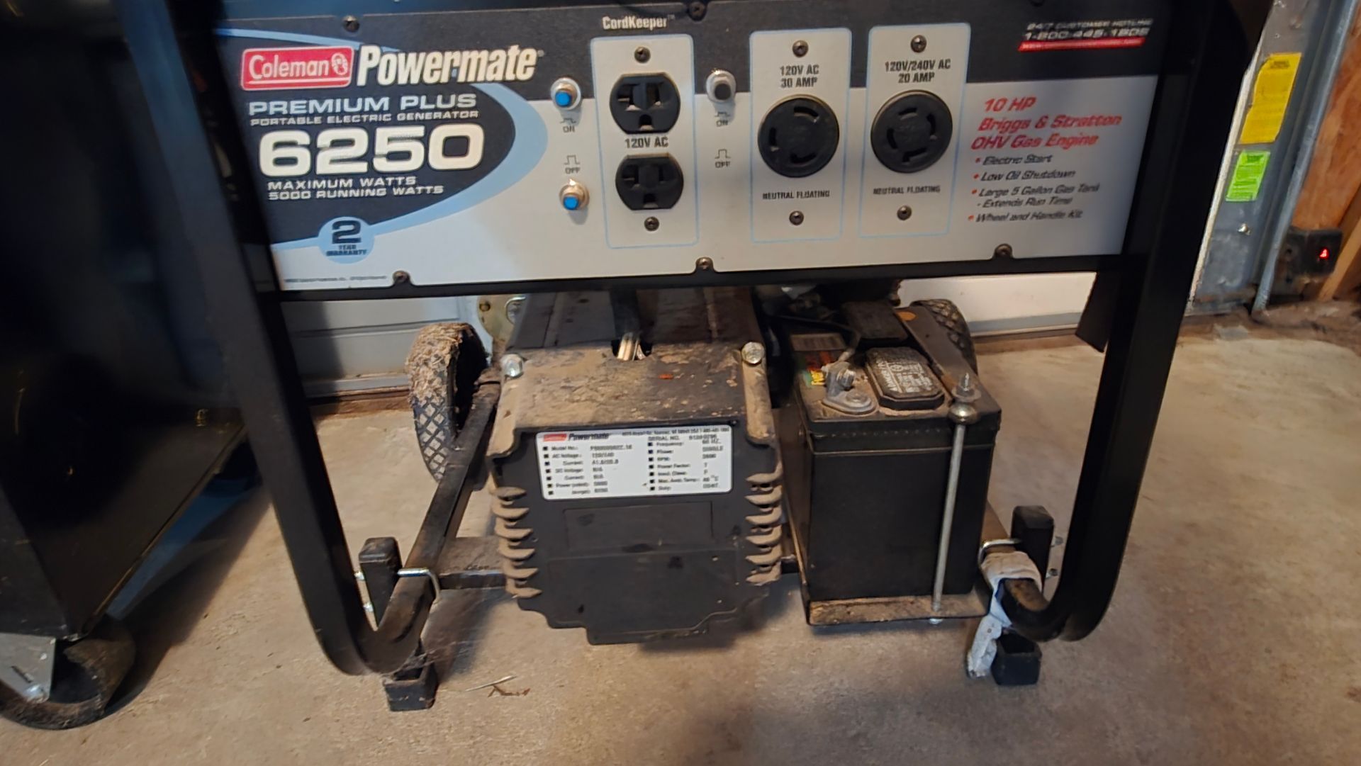- Coleman Powermate 6280 generator, 5K running watts, electric start, near new