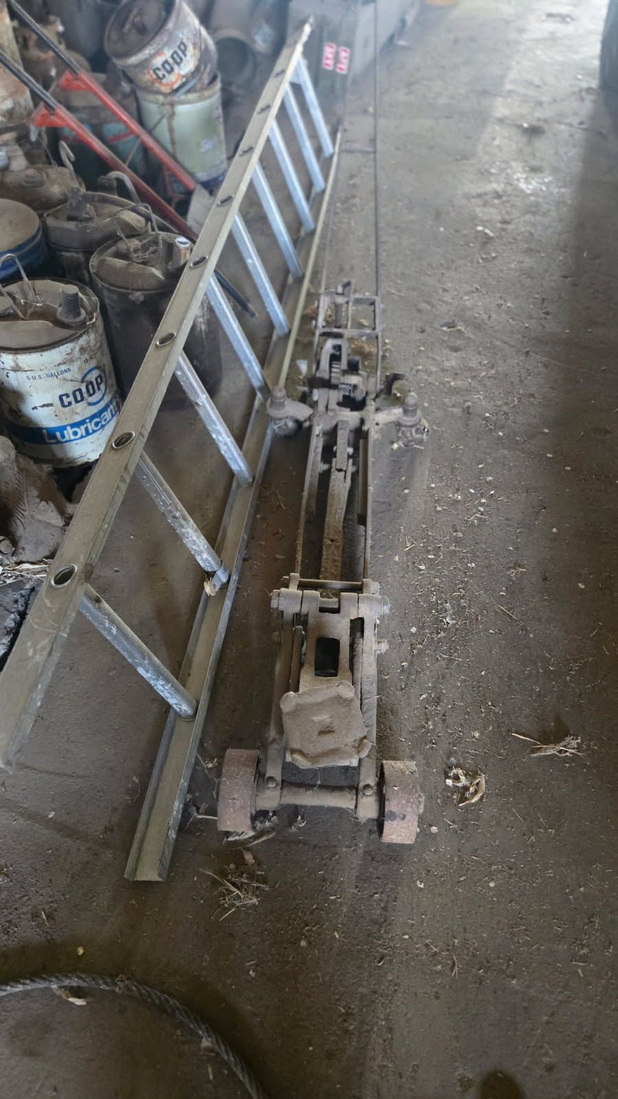 - Old floor jack on steel wheels, 2-HiLift jacks