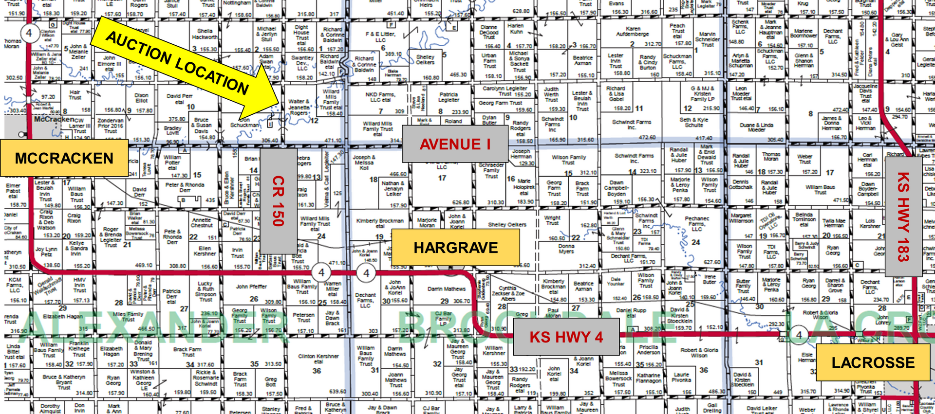 From McCracken, KS, go 4mi. E on Ave I to CR 150, then approx. 1mi. N
