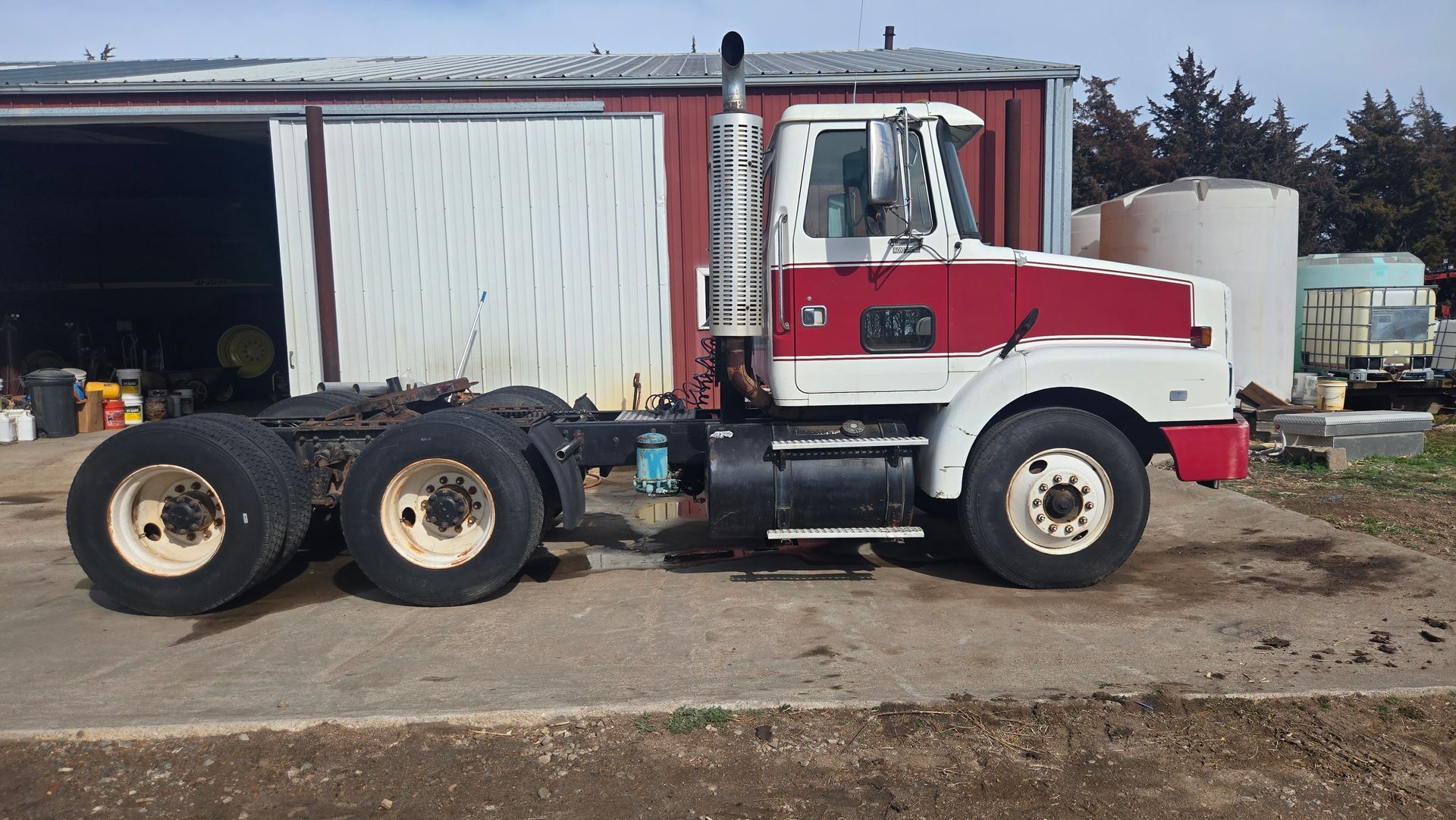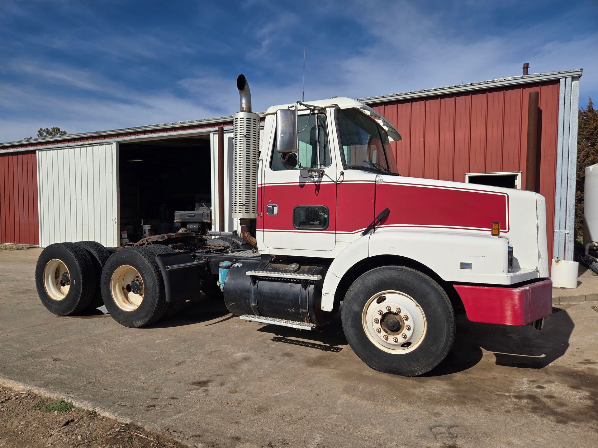 - 1994 White GMC, day cab, twin screw, Fuller 9-speed, Detroit 60 series engine, air brakes, seat, & suspension VIN#4VIJDBRF6RR831525