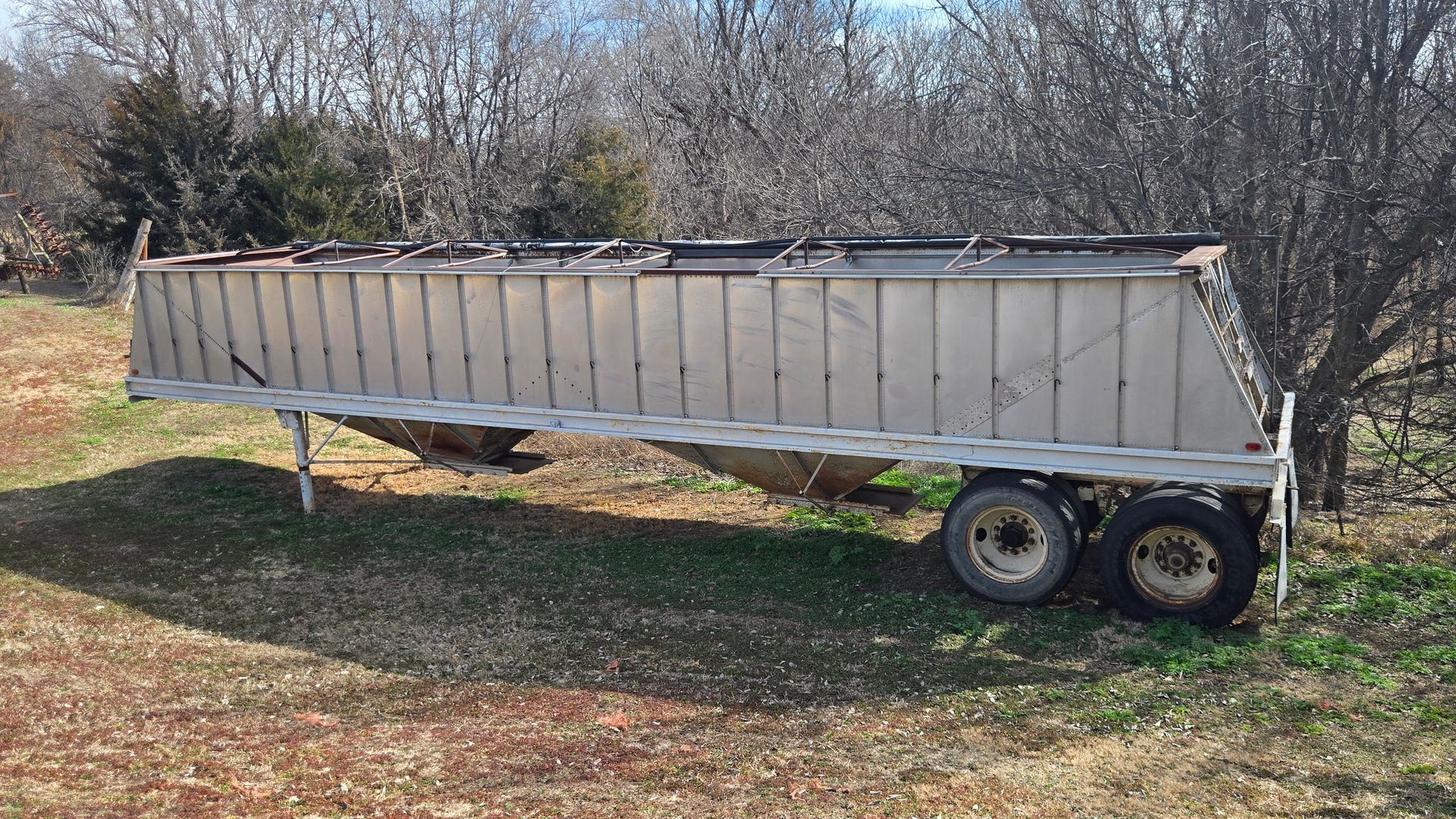 - 1972 Titan Grain trailer, 38', steel chassis & floor w/aluminum sides, 2 hoppers, 1000 bu., 11Rx24.5 tandem duals