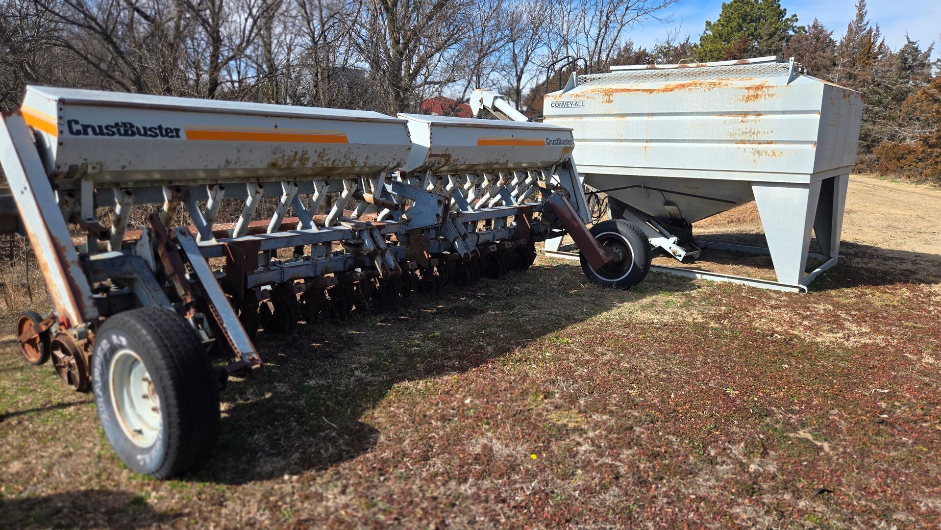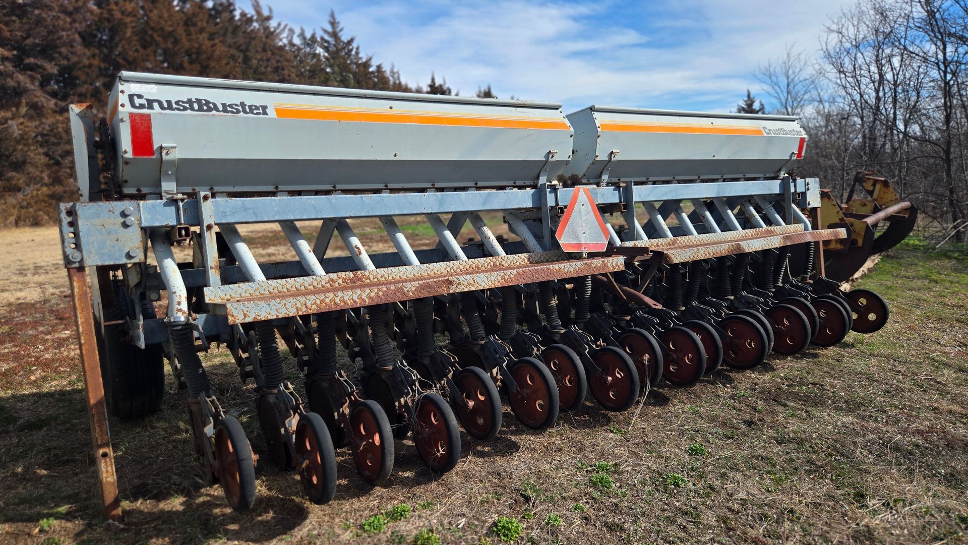 - Crust Buster grass drill 14ft 18 row, 10" spacings, 3 pt., w/additional adapter for grain setting SE# DR-6245