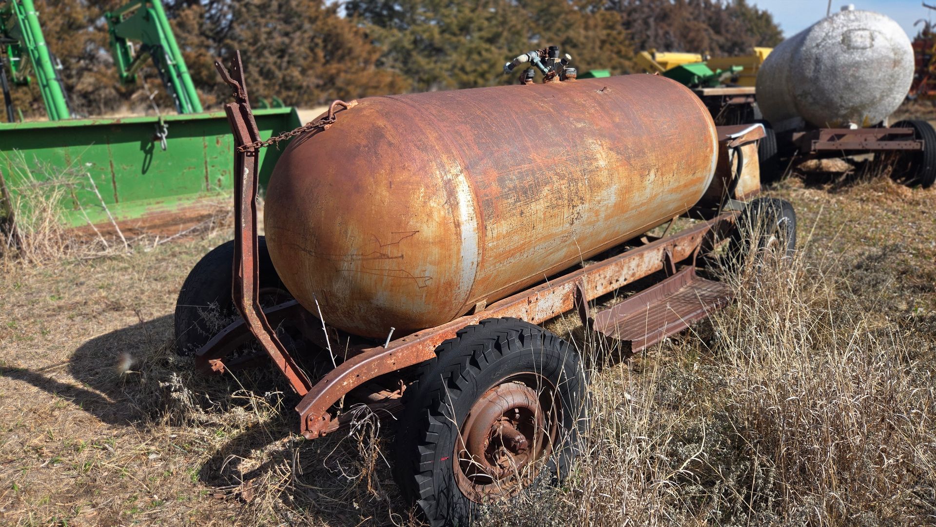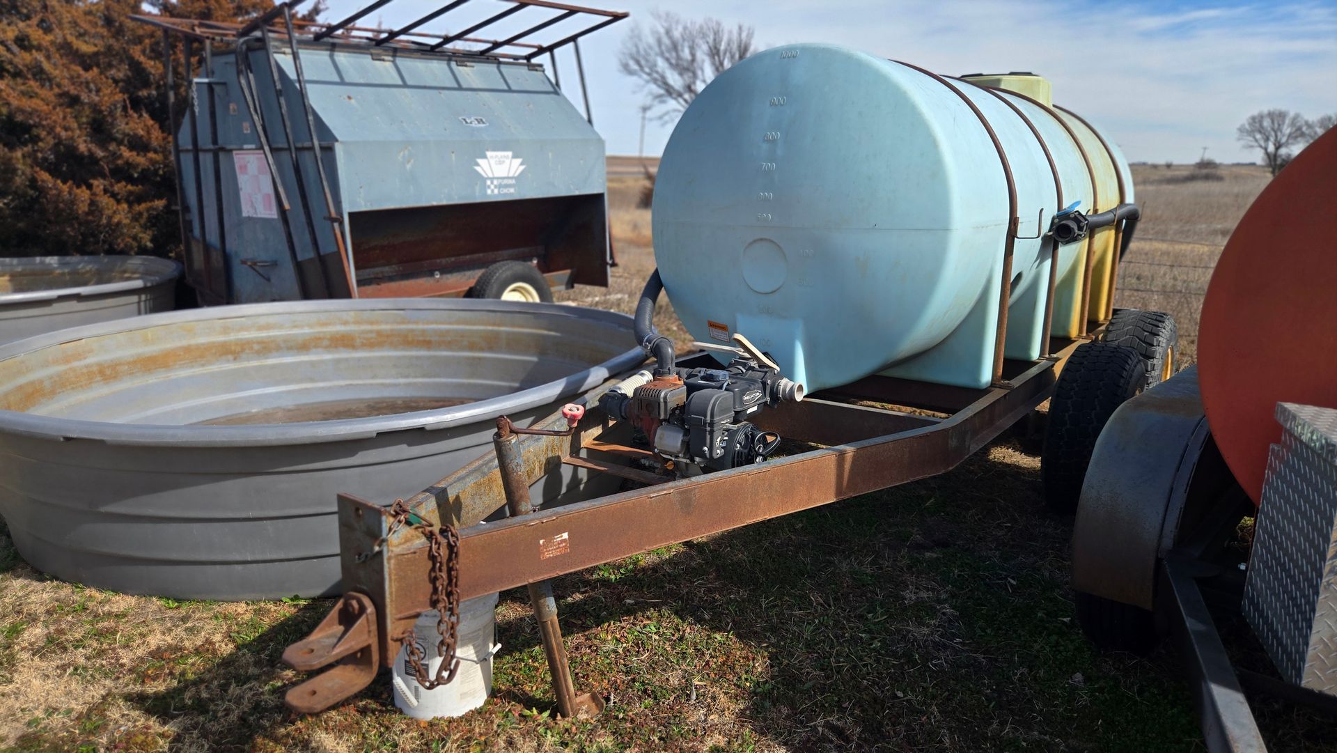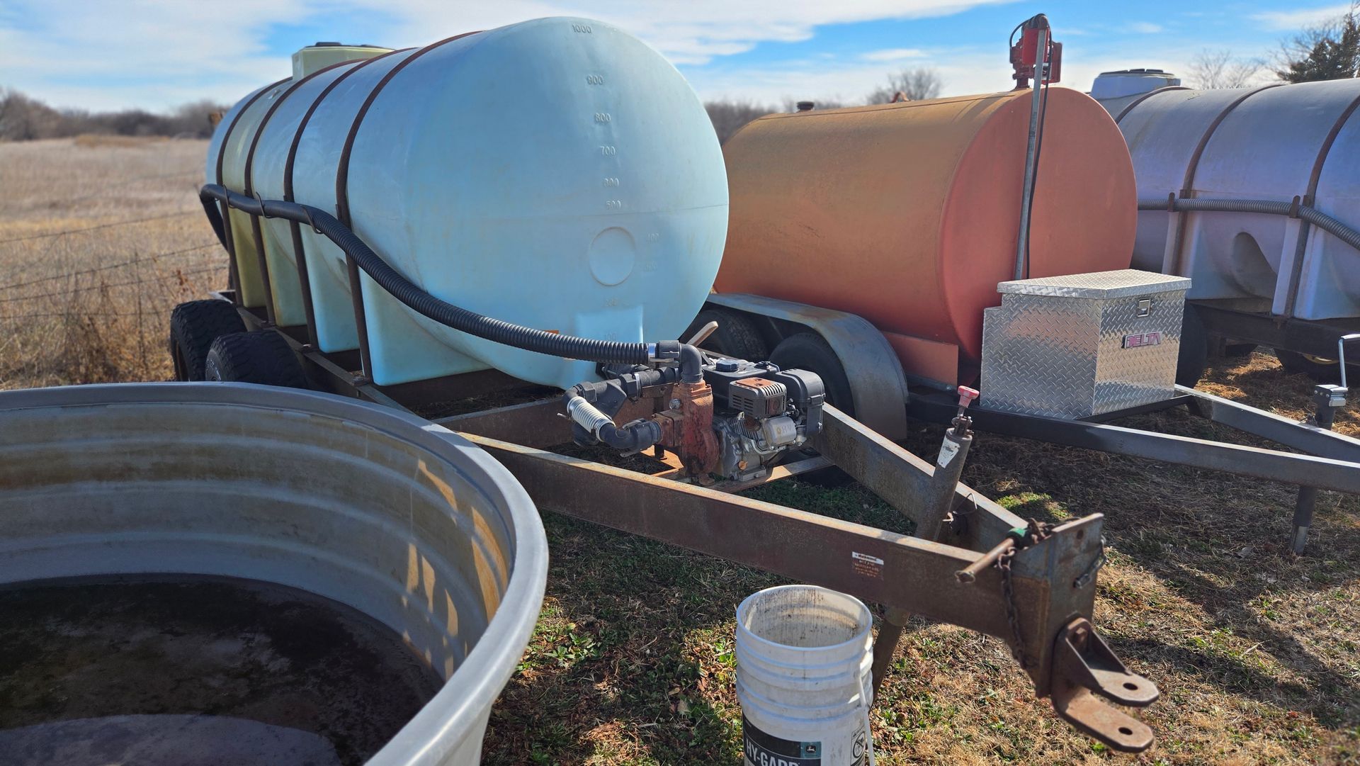 - 1000 gal. Nurse tank, good, on tandem axle trailer w/Predator engine