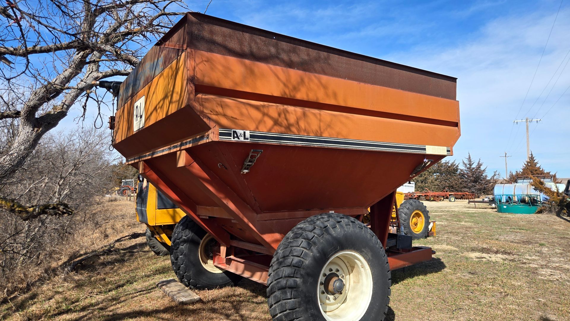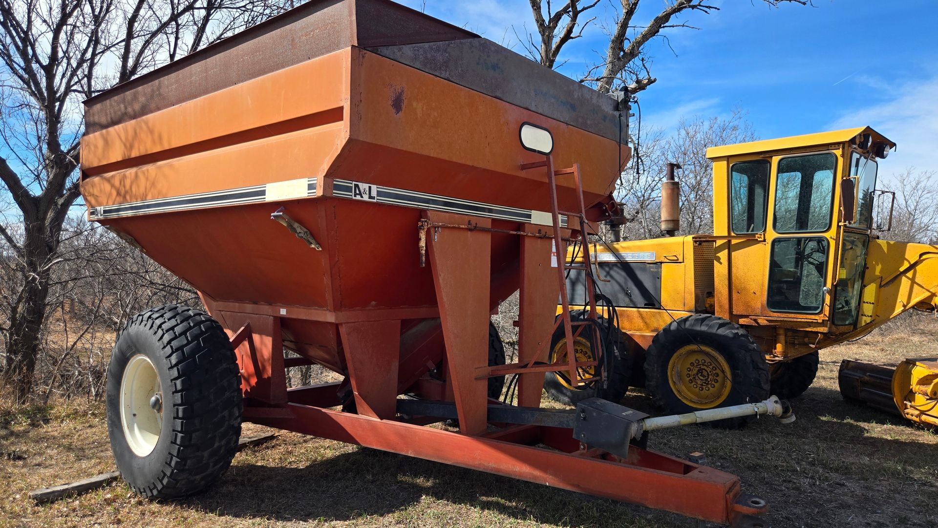 - A & L grain cart, F-505 corner auger, older roll-over tarp
