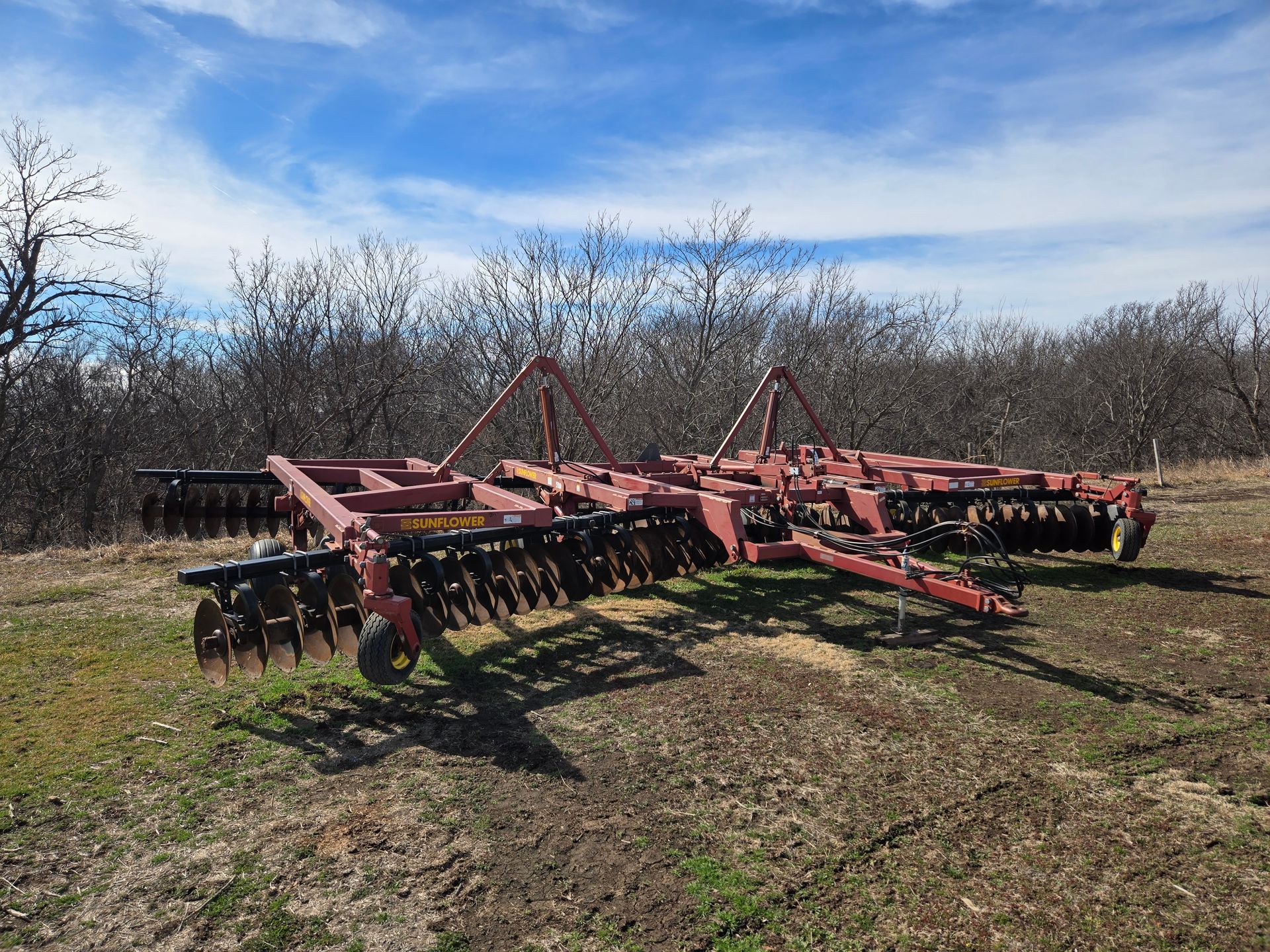 - Sunflower Mod 80TA-27' double off-set disc 20" front, 21" back, SE# 1810