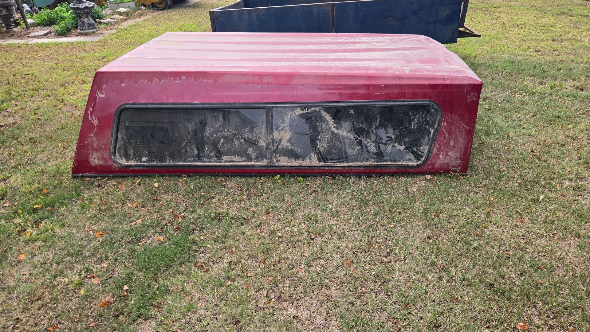 - Sportsman p-up topper, 98”x70”, off 1988 Chev long bed, Maroon color