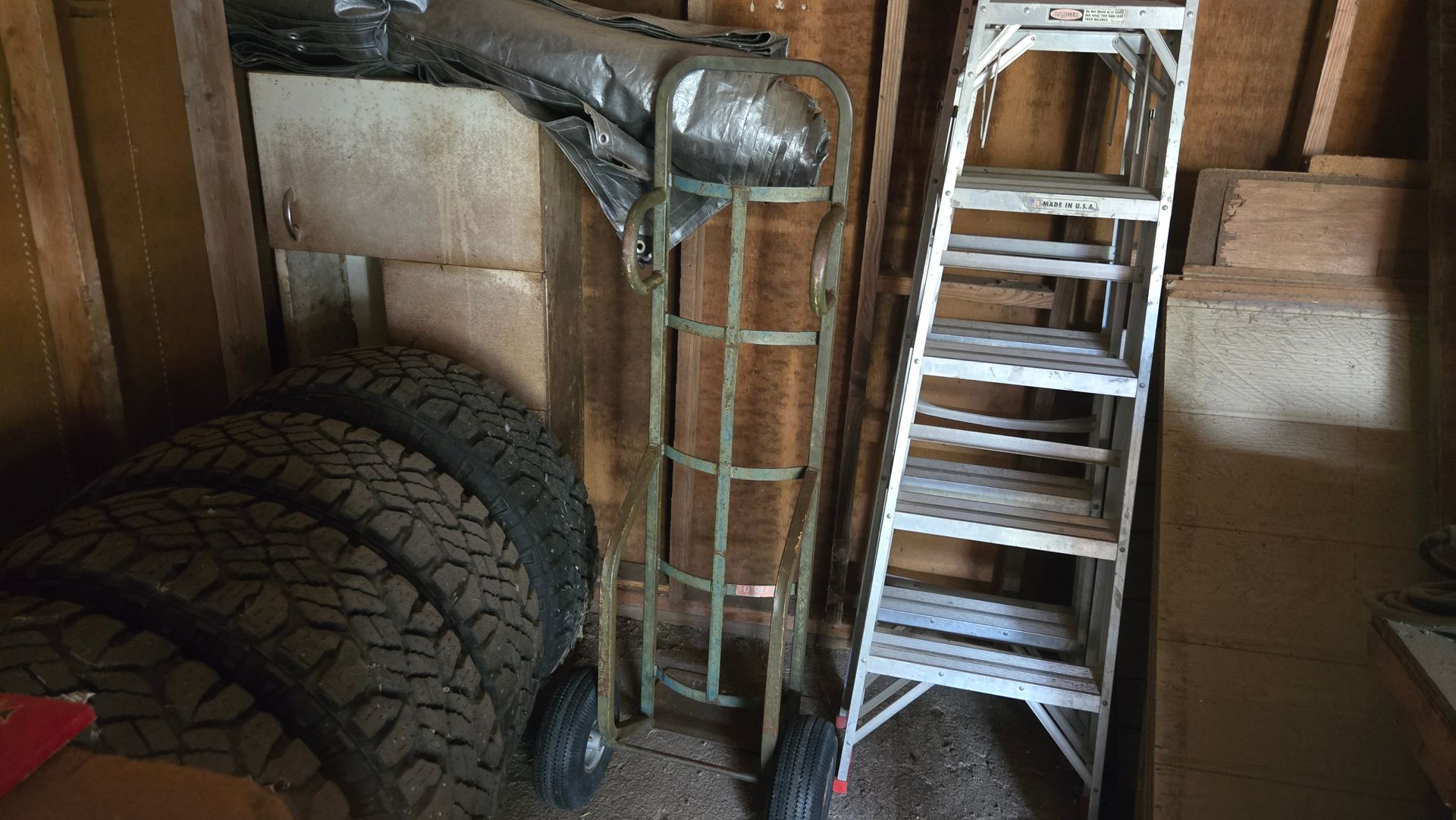 - Dolly cart, 2 aluminum 6’ step ladders